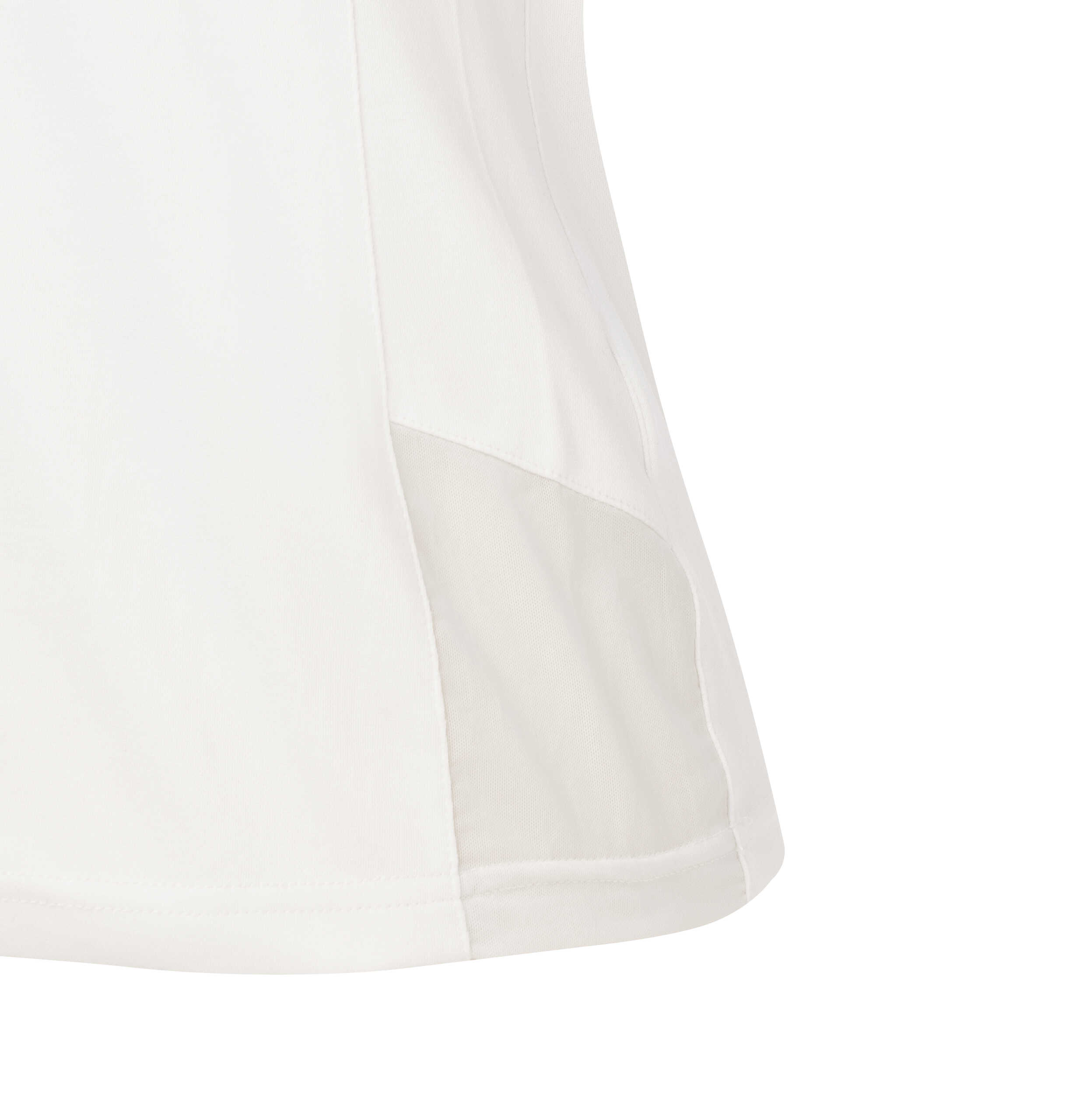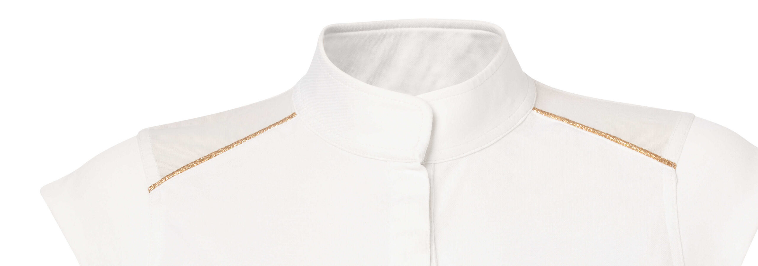– Classic white stand-up collar with silver logo on the left sleeve.
