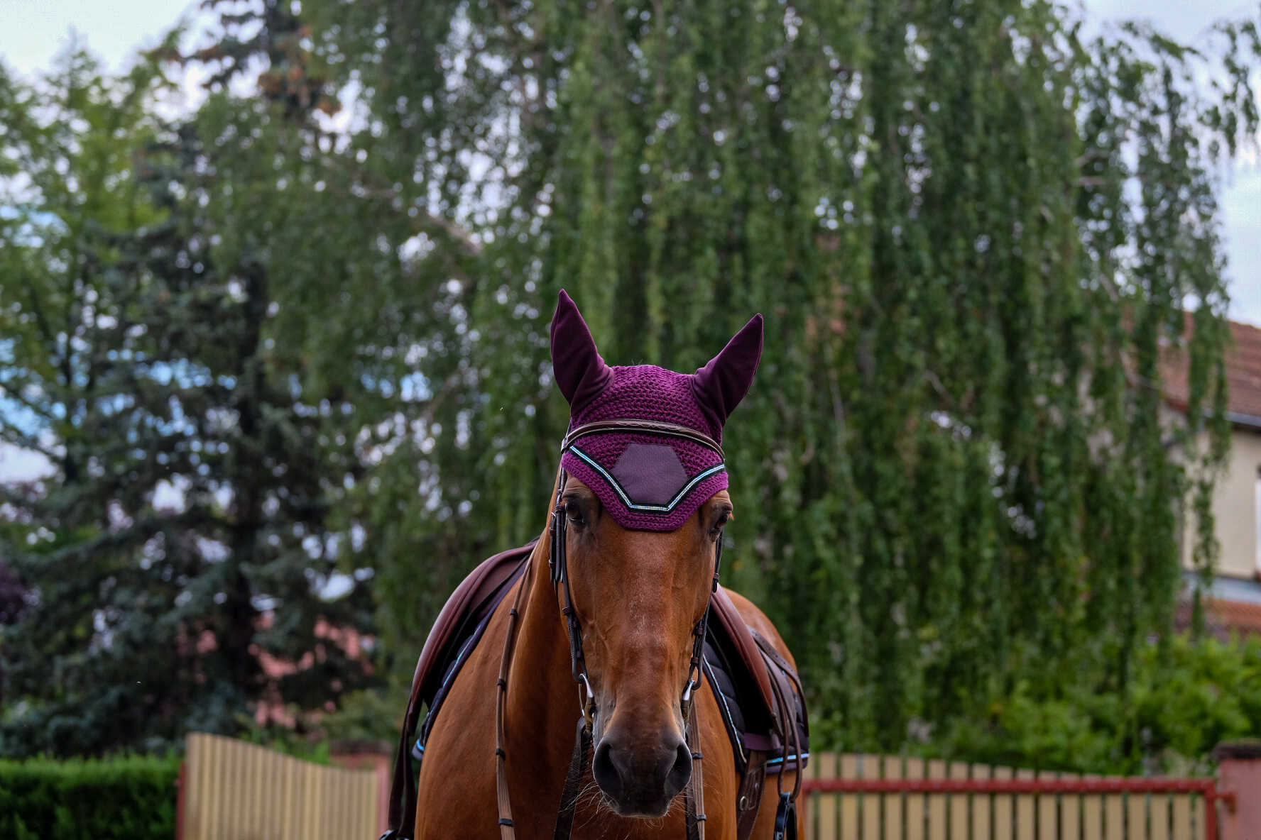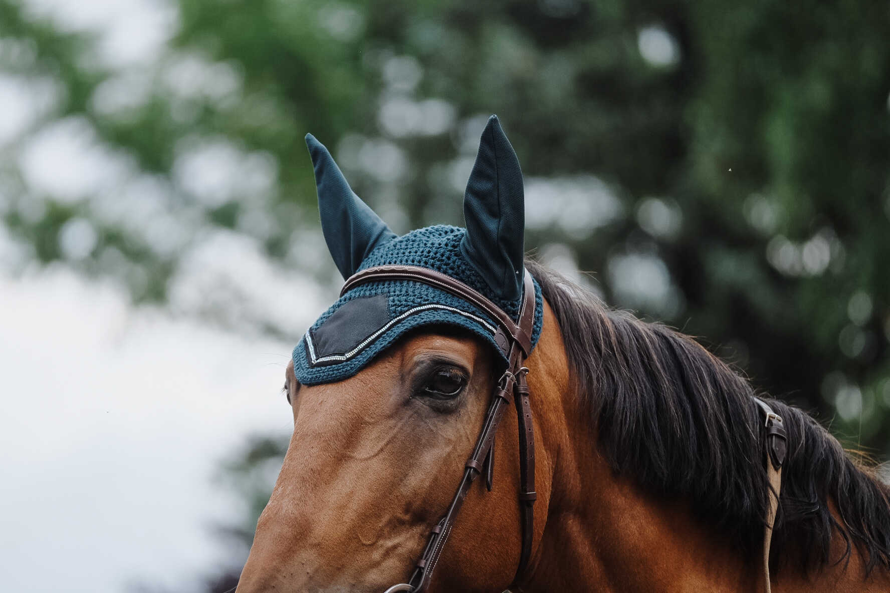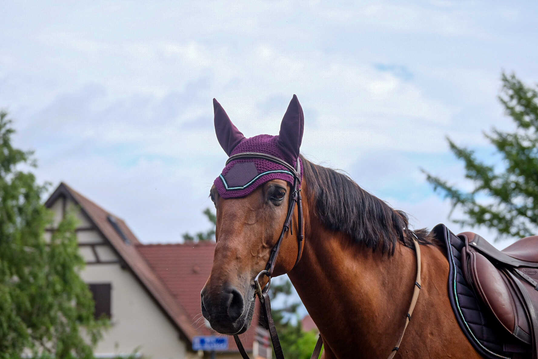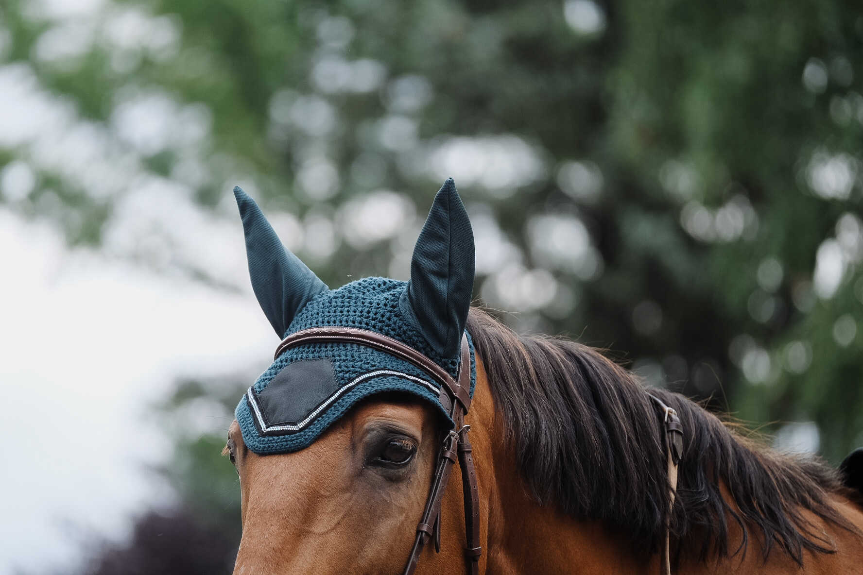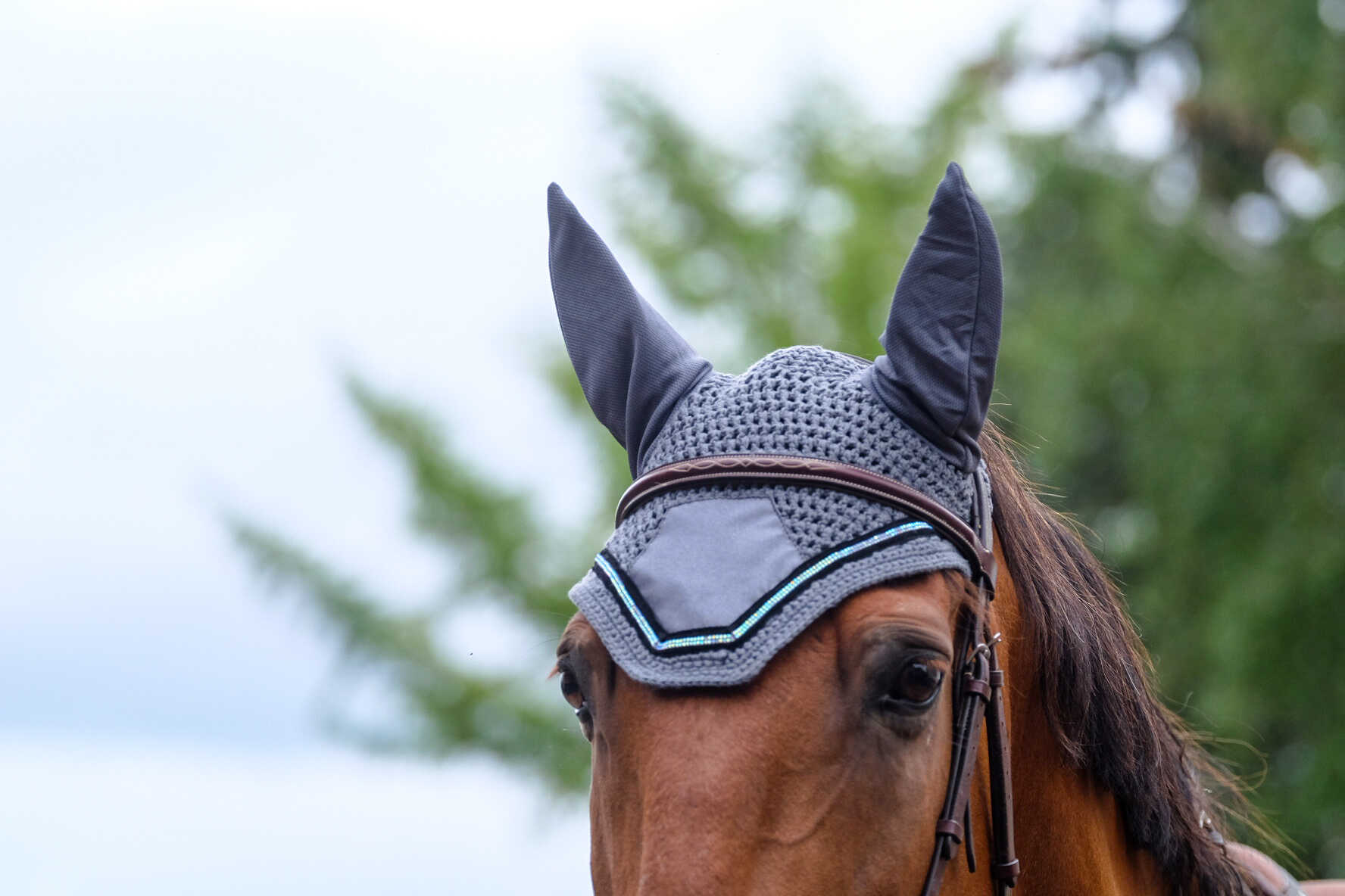 – Fabric stripes with two fine lines of rhinestones, with a smooth leather square on each side as a reminder of the EQUITHÈME logo.