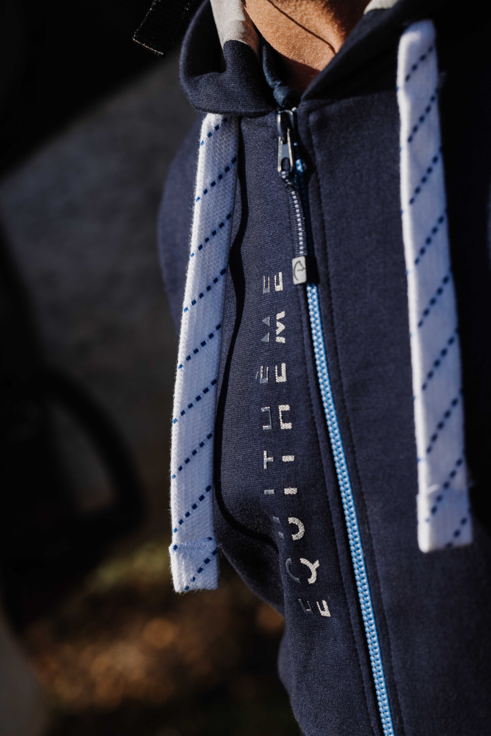 – Heather gray, double-layered hood, adjustable with drawstring, and zippered hand pockets.