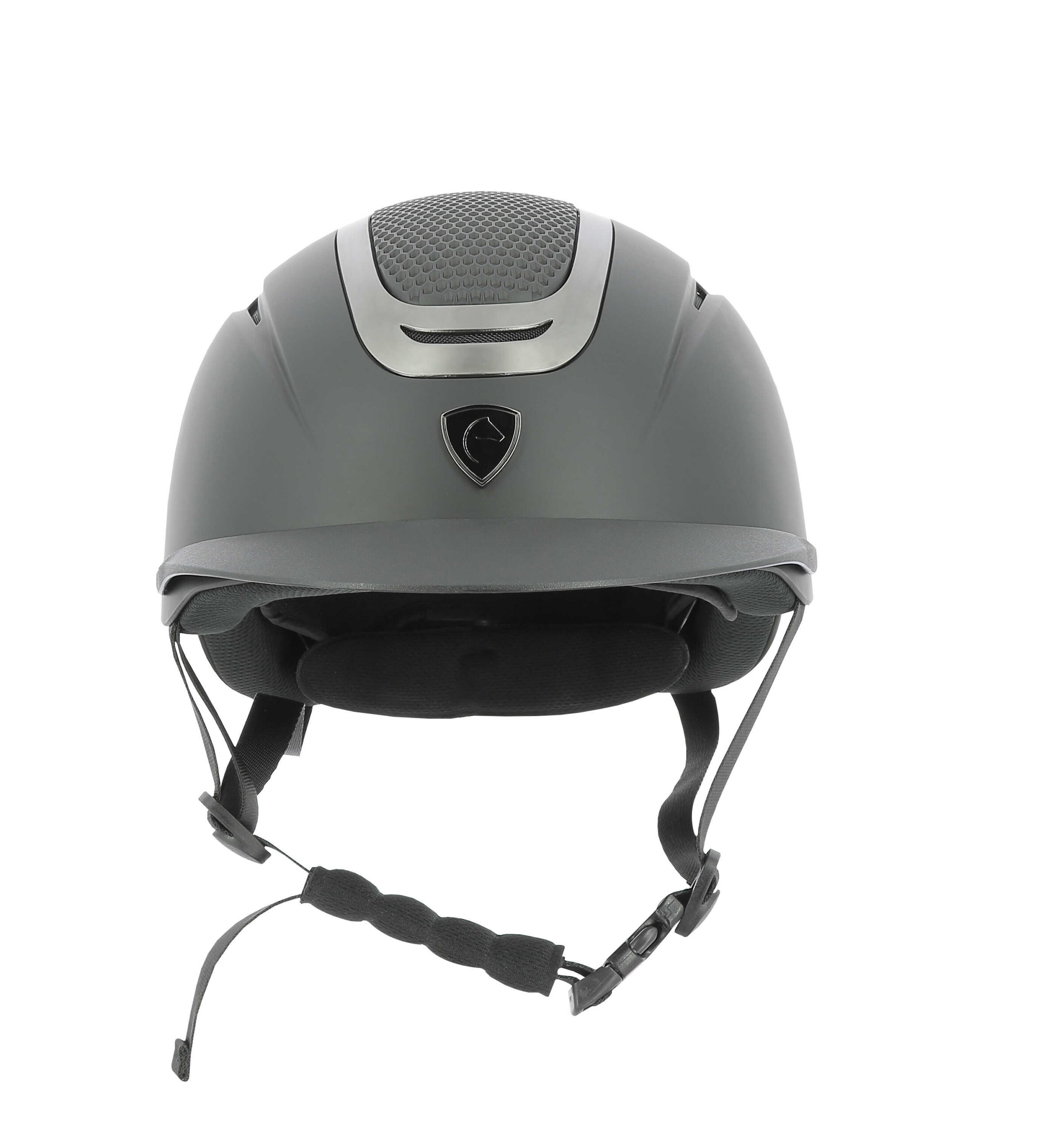 Matt black helmet, metallic insert surround, honeycomb front vent for better ventilation of the helmet. ABS shell, highly impact resistant, even in extreme temperatures. EPS (expanded polystyrene) shell, very light, with excellent shock absorption properties. The hundreds of semi-circles embedded in the surface of the shell not only improve shock absorption, but also allow excellent air circulation combined with the front, rear and central ventilation zones. Moisture-absorbing textile inner padding, removable and washable. Microfiber attachment harness with quick-release clip, 4-point rear attachment that fits the neck and is equipped with a chin guard. Soft visor. Weight: between 430 and 530g. CE labeled helmet, CE VG1 01.040 2014-12 certified in accordance with regulation 2016/425/EU.