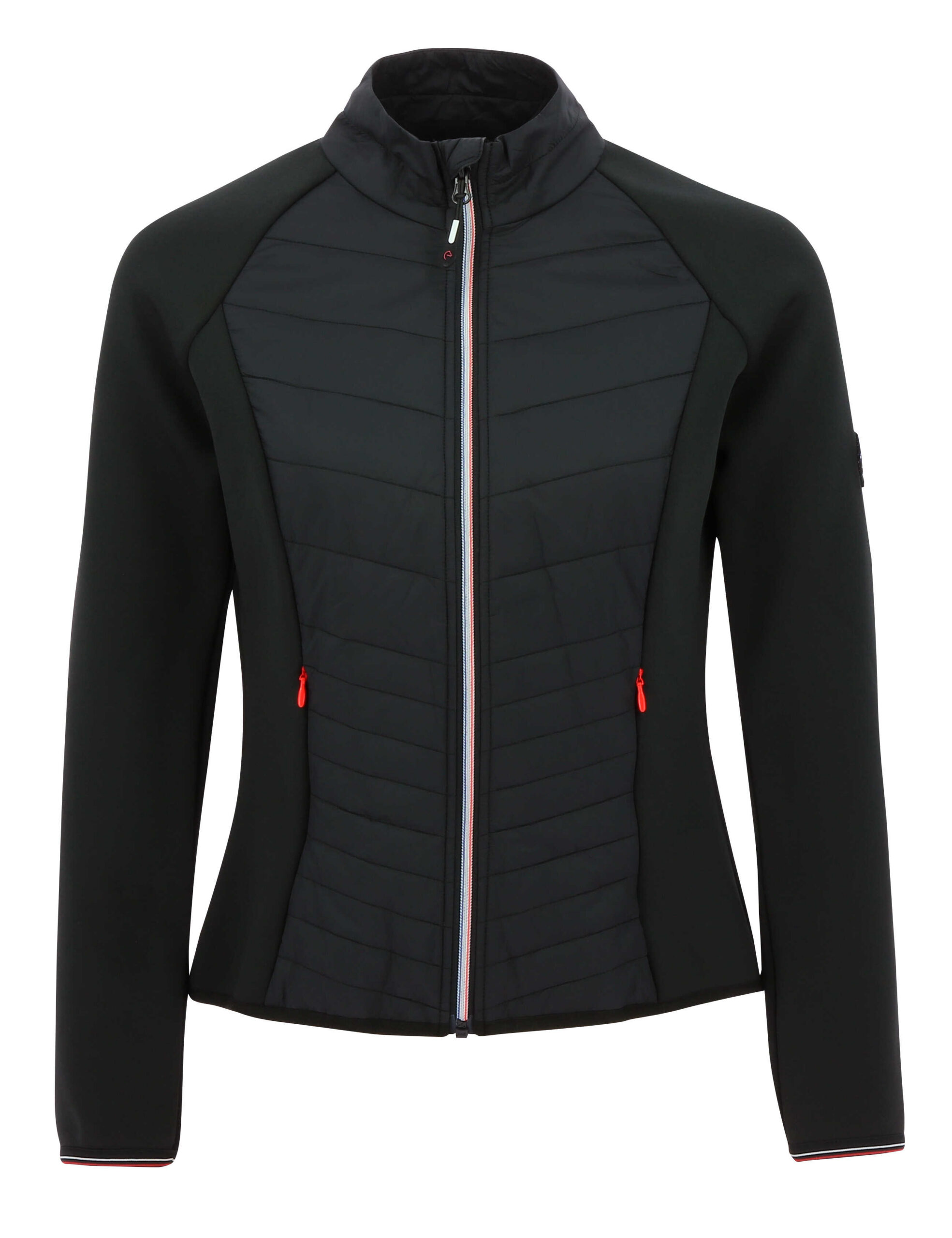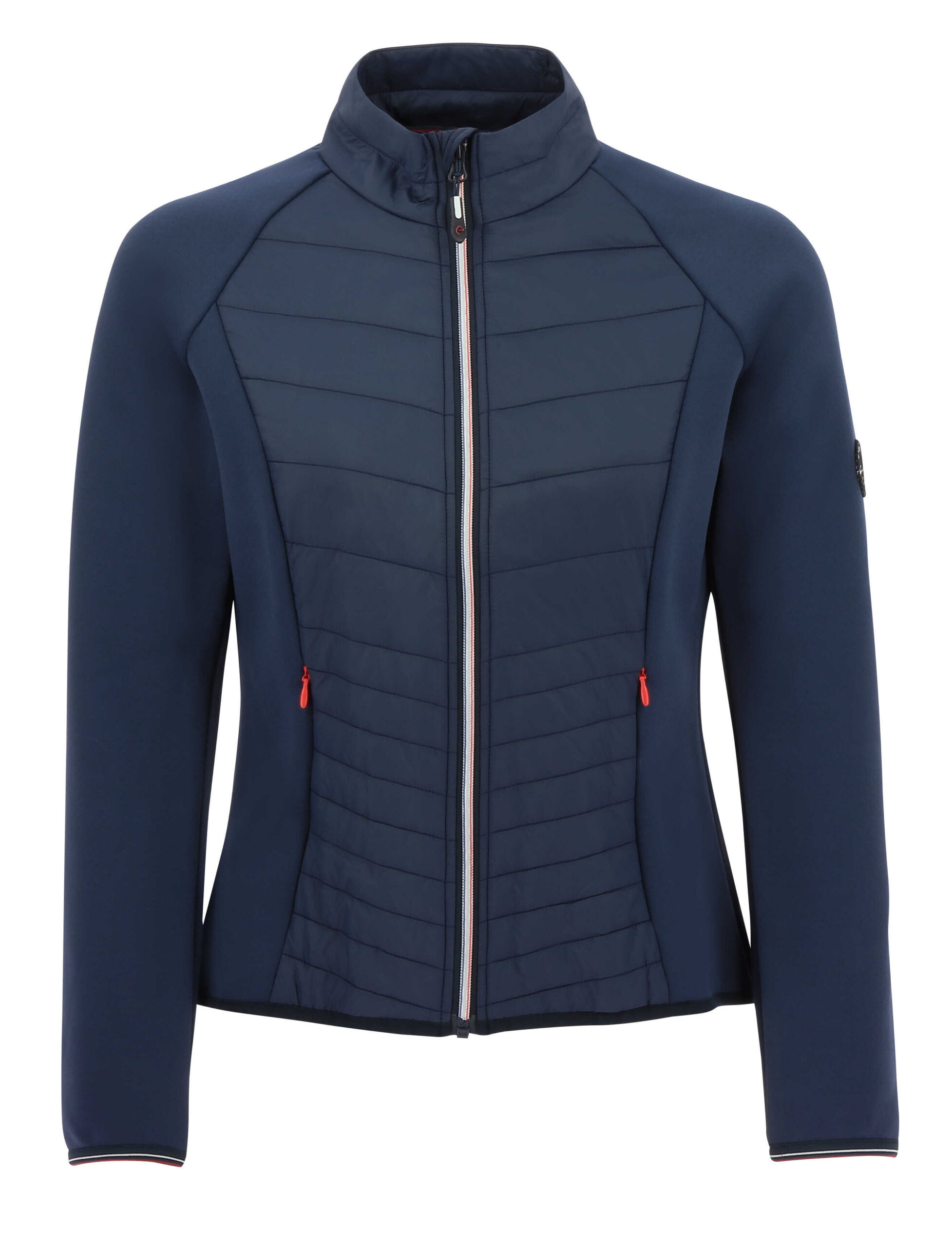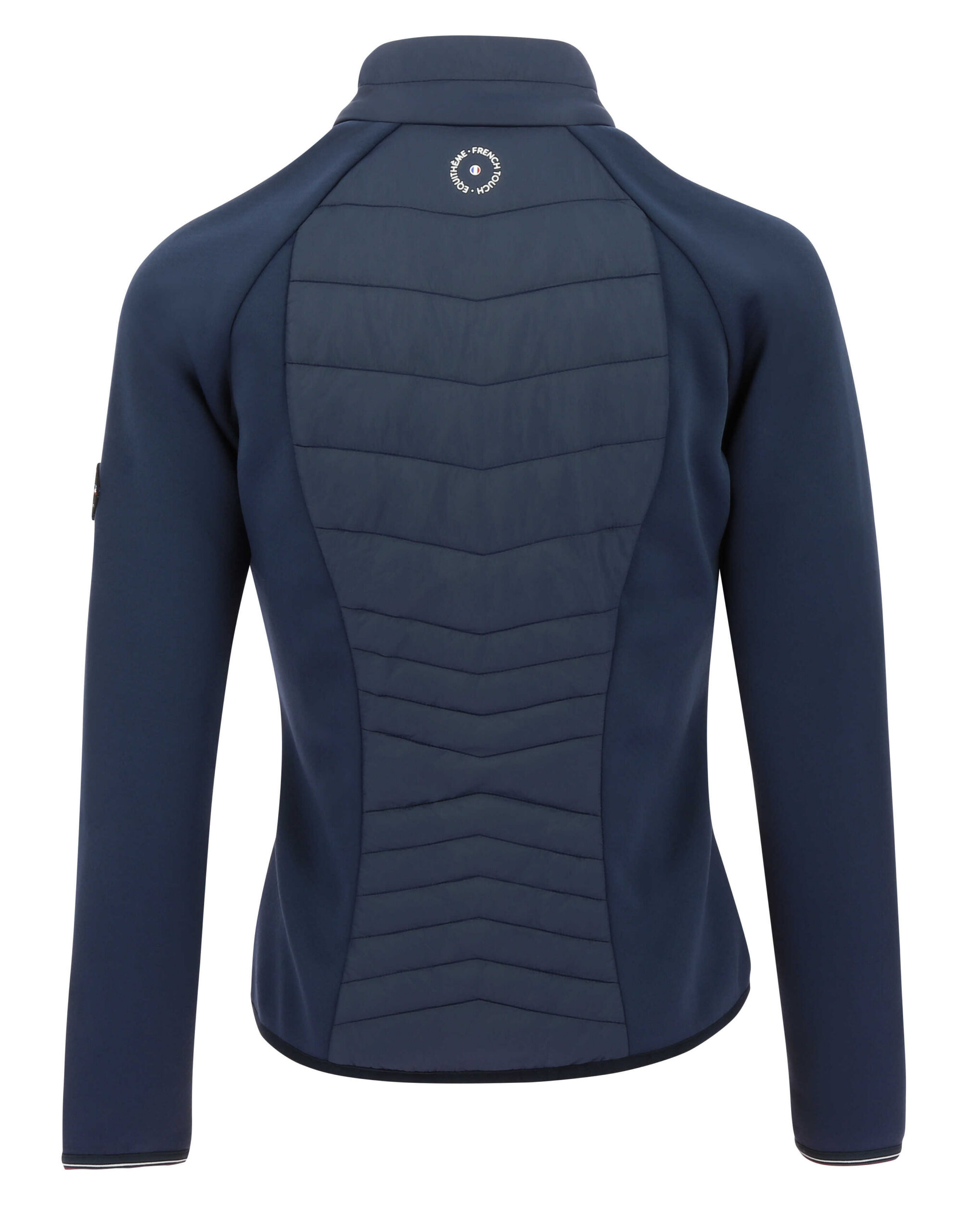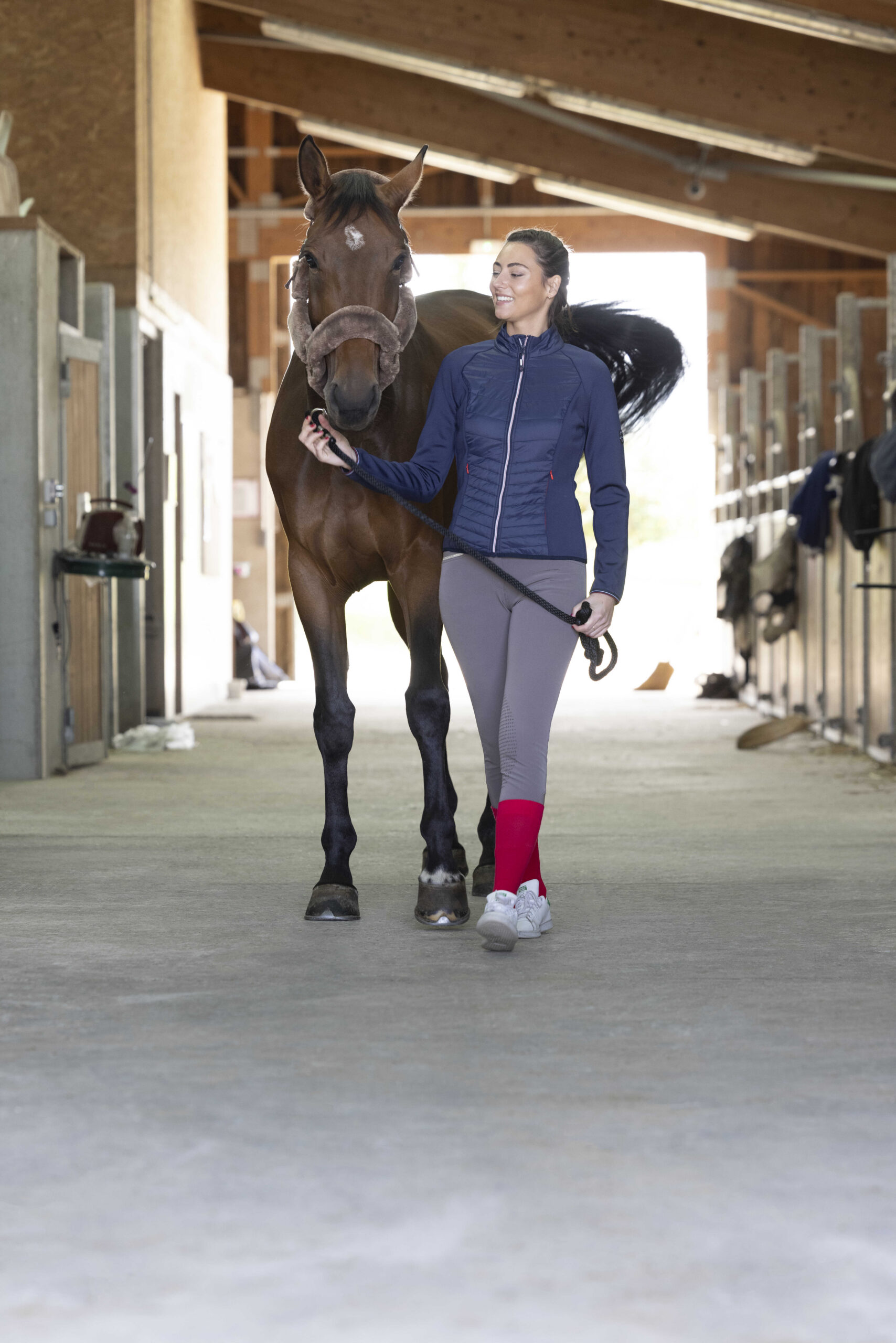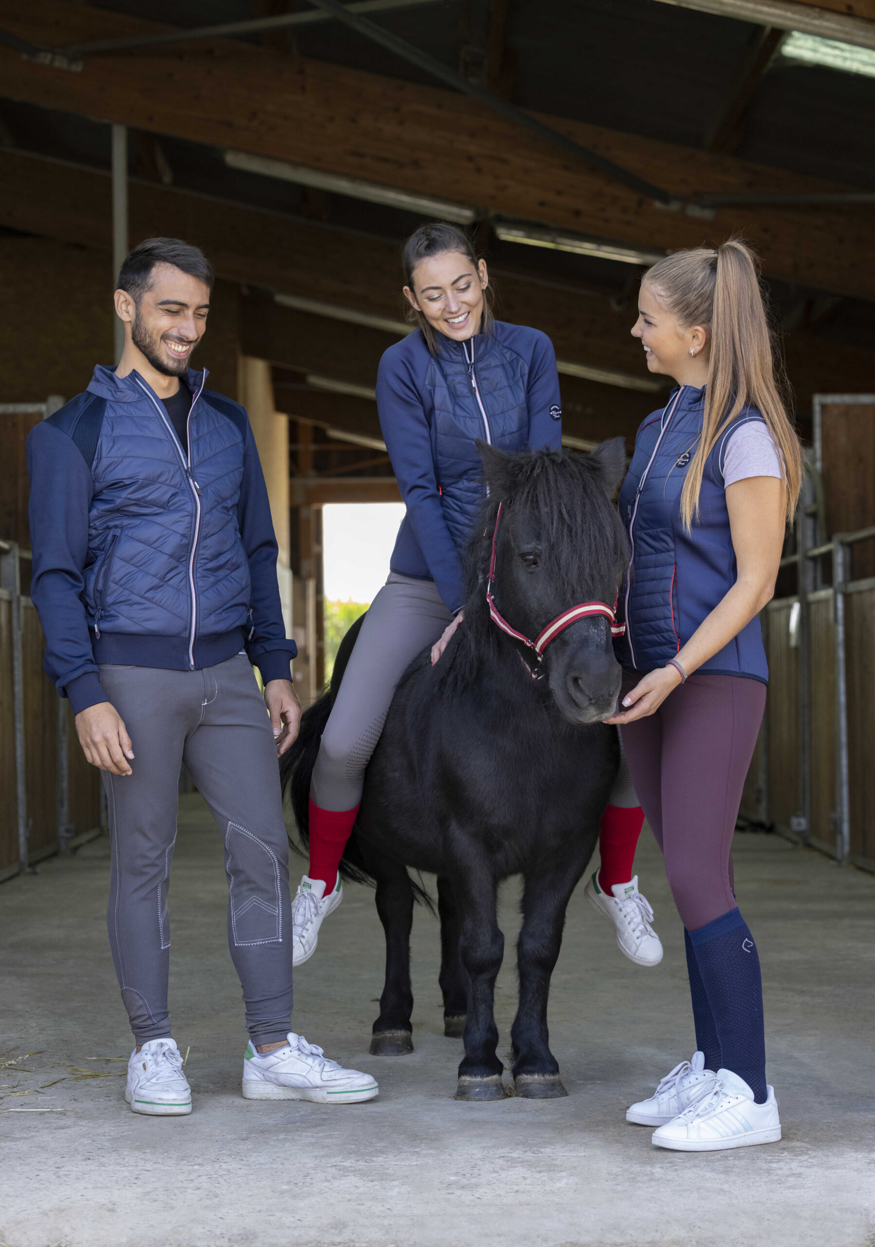Waterproof and comfortable hybrid jacket. It can be worn alone or under a jacket and will provide you with all the comfort you need for your horseback riding. Insulation: Polyester fiber padding. Waterproof: The outer fabrics have undergone a DWR (Durable Water Repellent) treatment. STRETCH: Contrasting panels with elastane. FEATURES: – Fitted cut – Zipped hand pockets – Front zip closure – Elasticated cuffs and sleeve ends. Composition: Main material: 100% polyamide, Contrasting material: Face: 90% polyester, 10% elastane, Inside: 96% polyester, 4% elastane. Machine washable at 30°C.