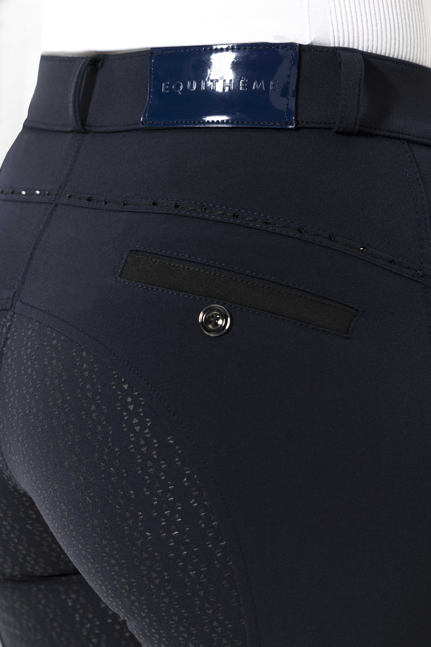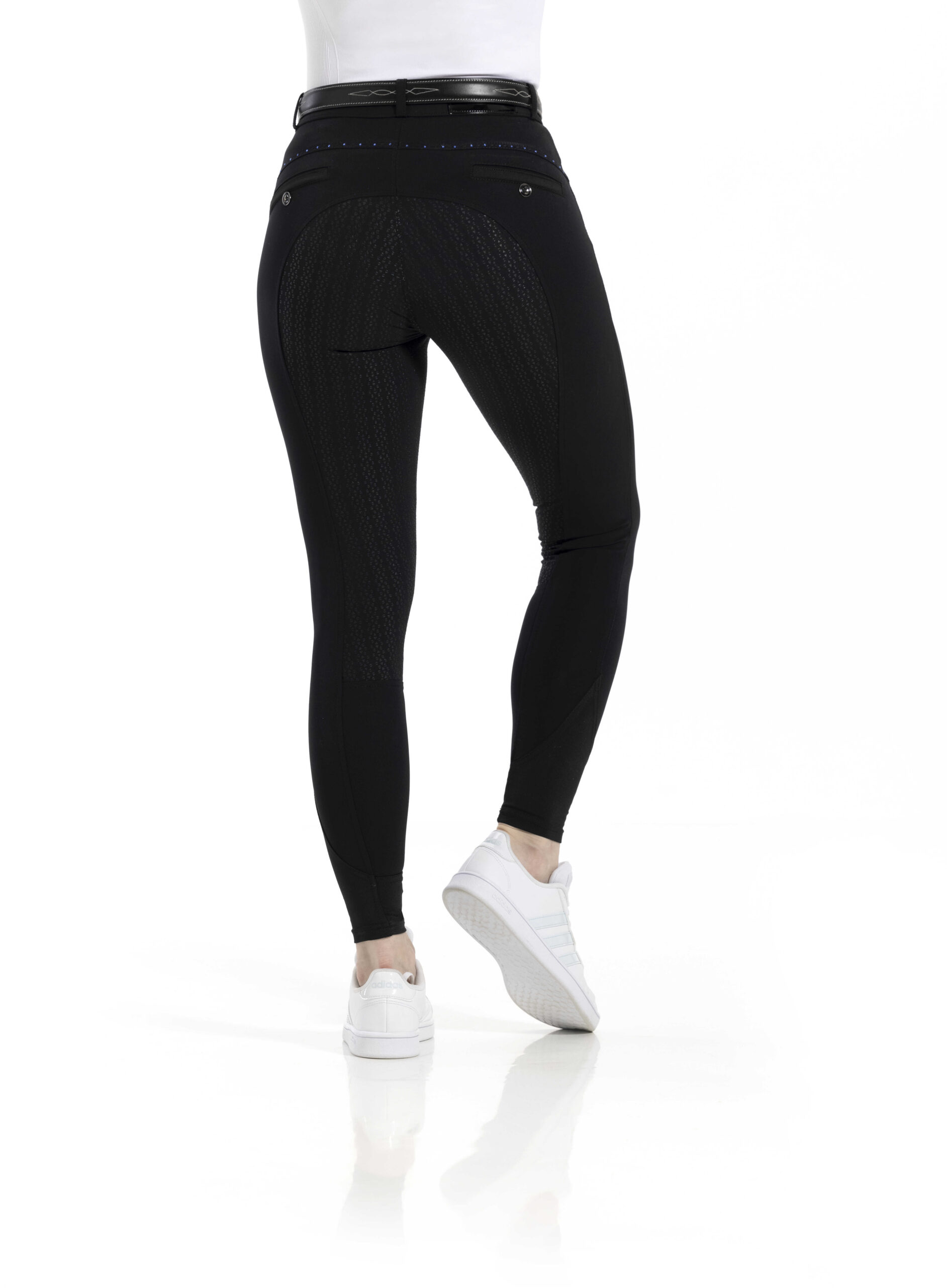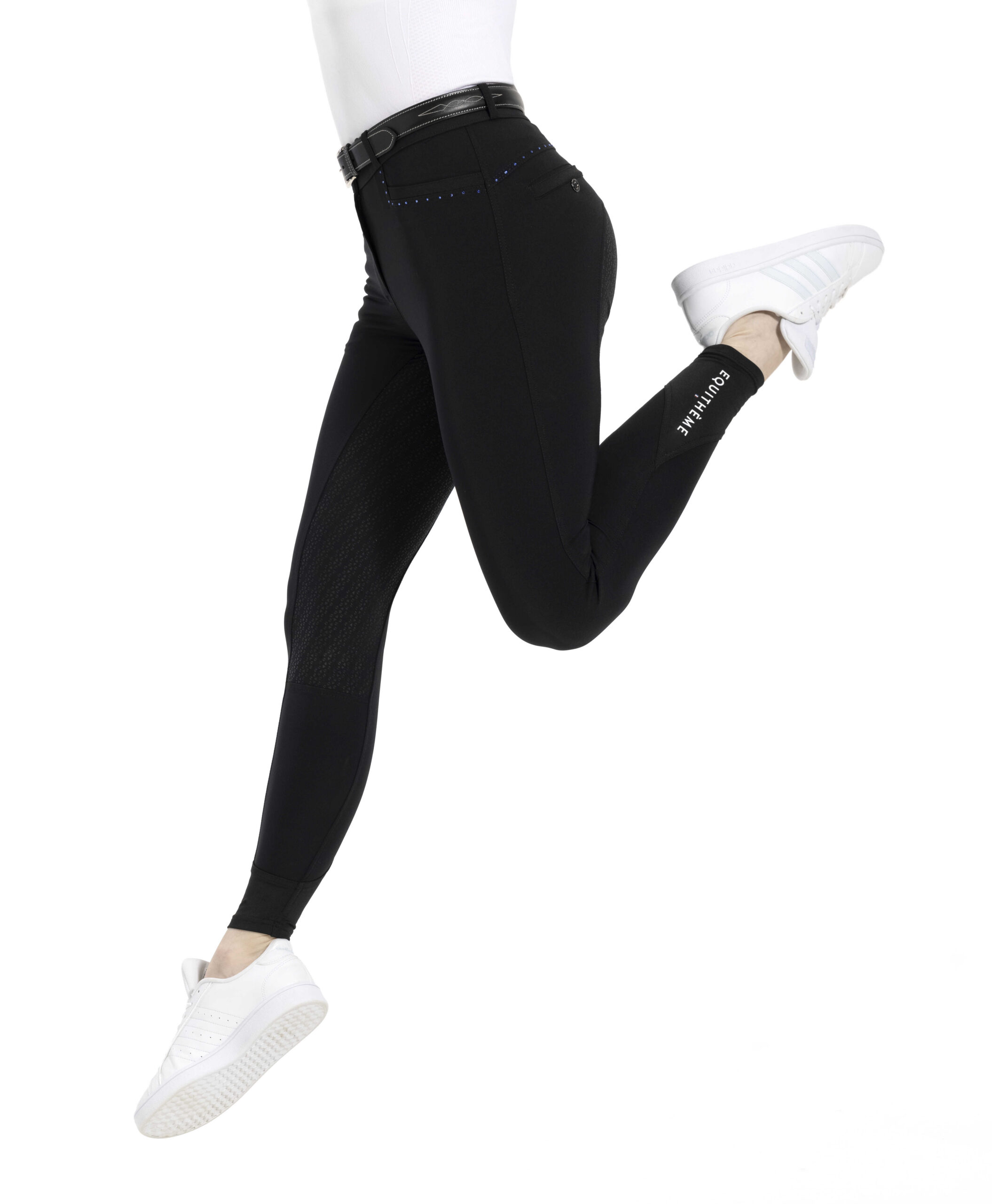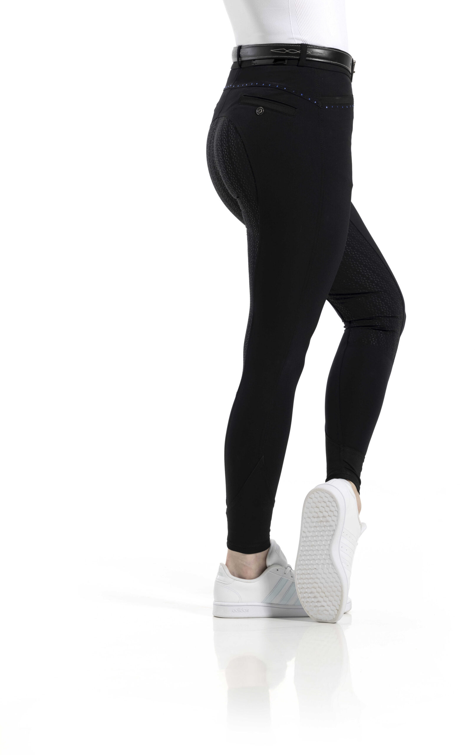 For sporty and trendy riders, a chic and refined piece.- Absolute comfort: Guaranteed support.- Widerstandsfähig and stretchy: Perfect fit.DETAILS:- Front and back seams decorated with black rhinestones.- Silicone knee patches for perfect grip in the saddle.- Classic cut, elastane leg ends.COMPOSITION: 89% polyamide, 11% elastane.Machine washable at 30°C.
