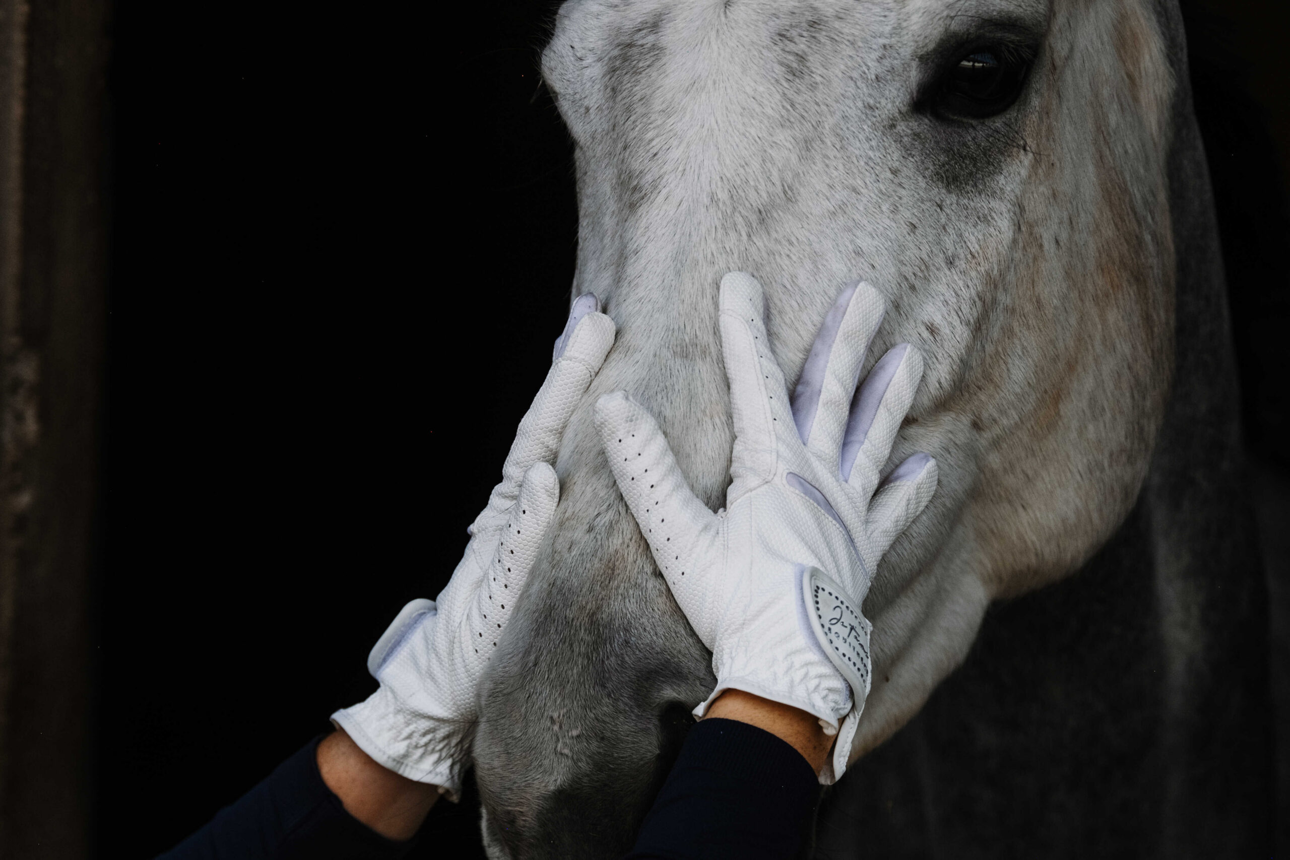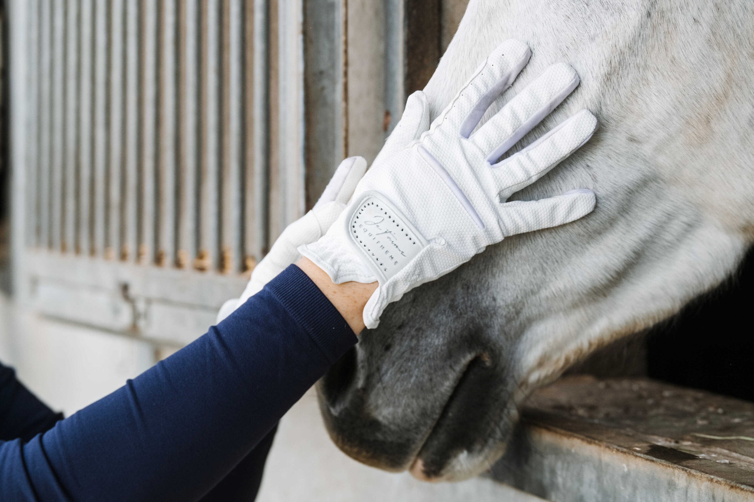 Detailed with rhinestones and an elegant signature on the Velcro closure.