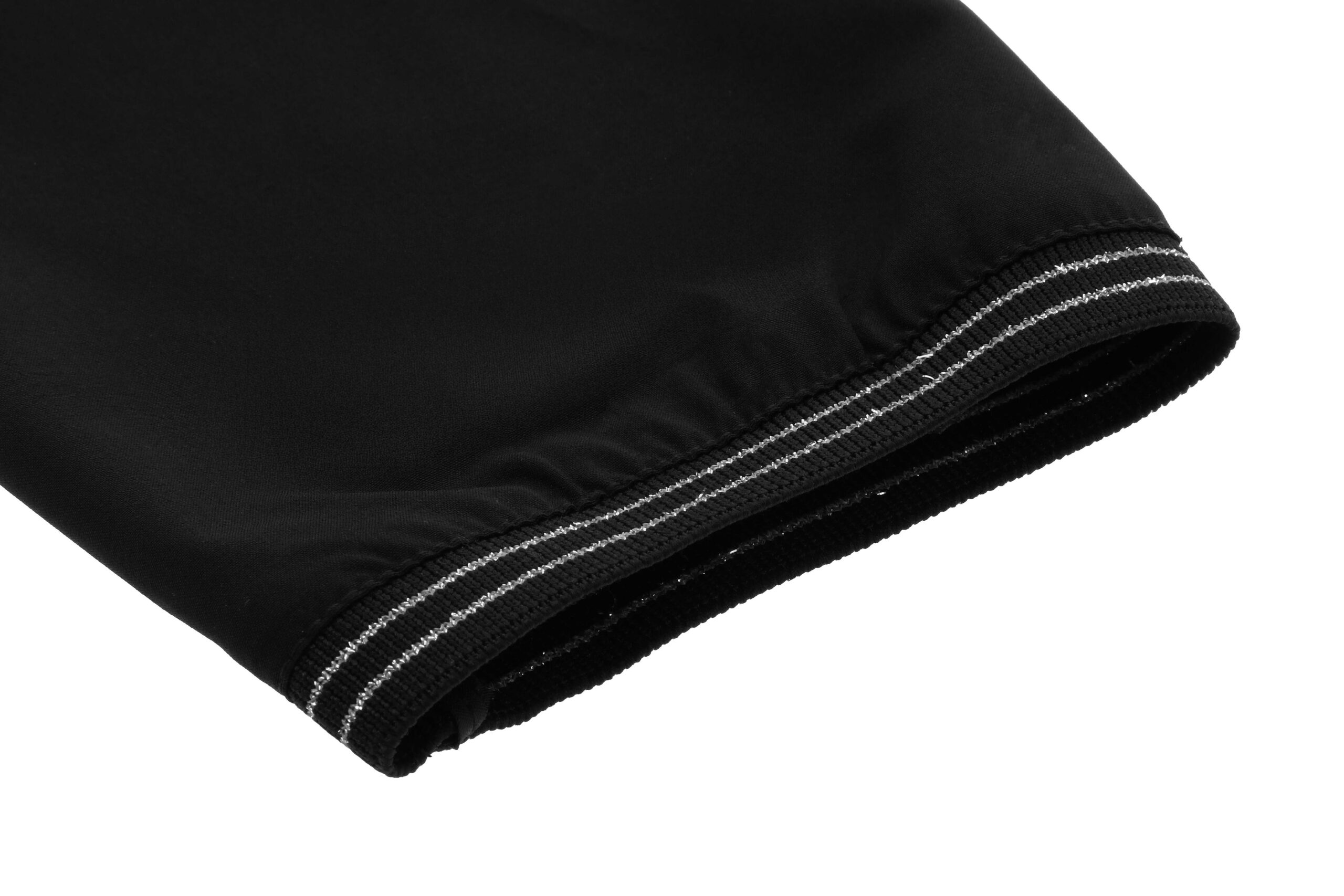 – Optimal comfort: Lightweight, elastic hem and cuffs with double silver lines.