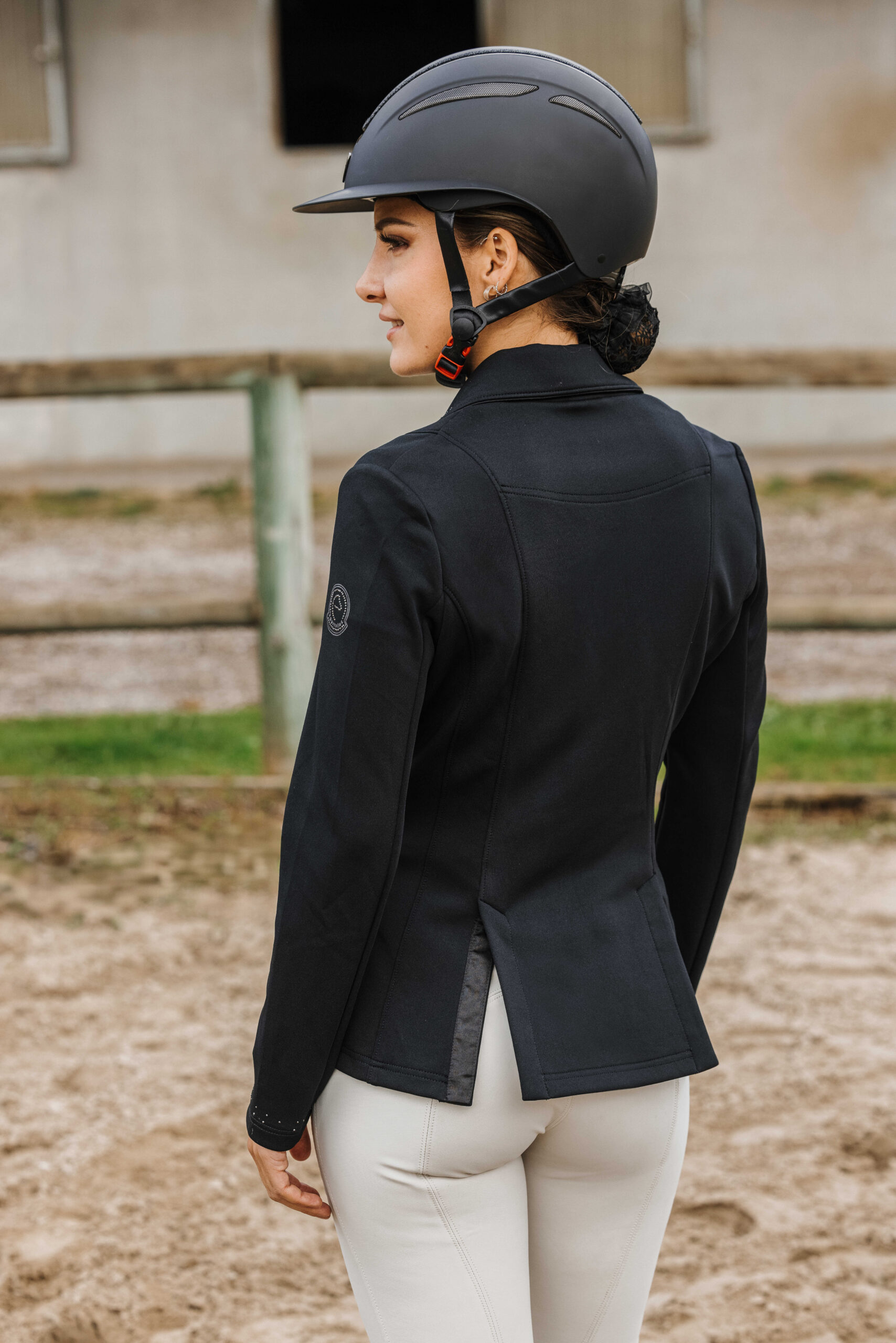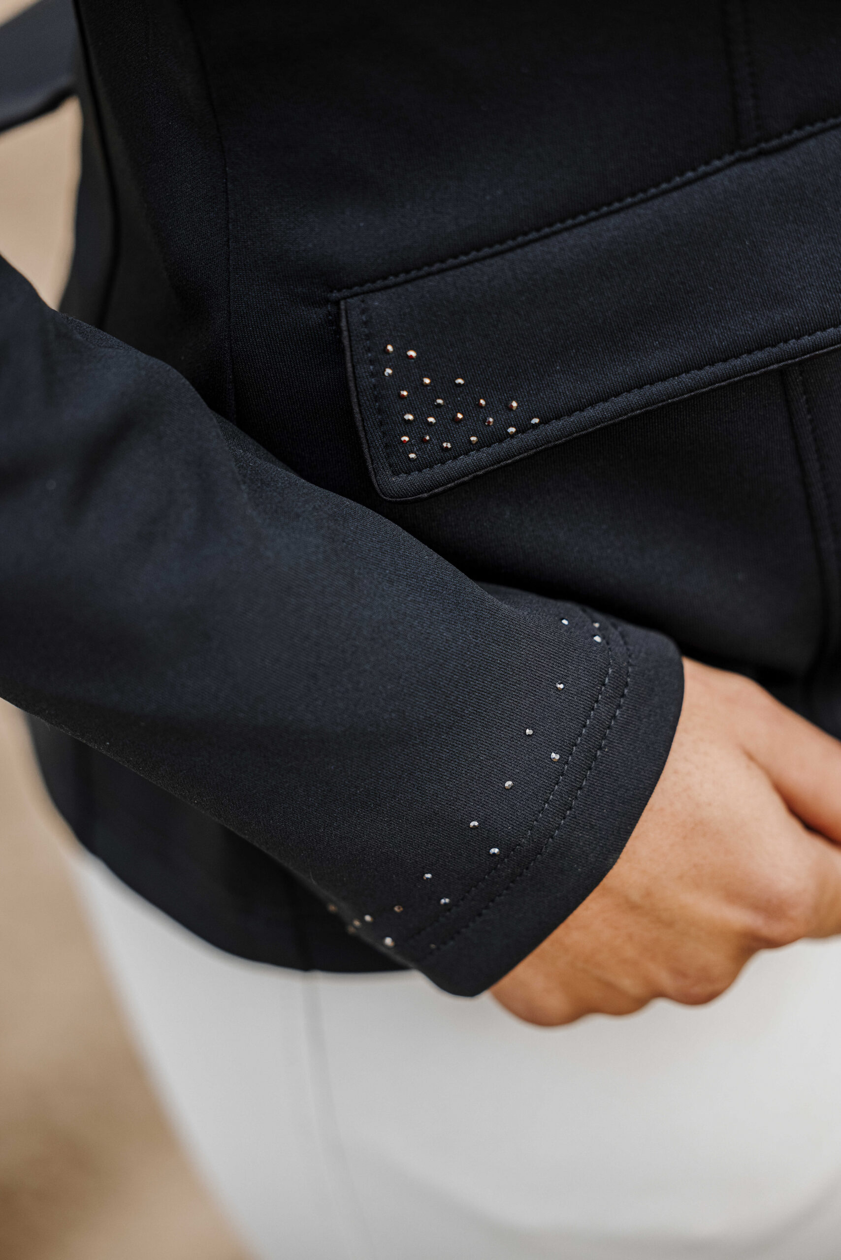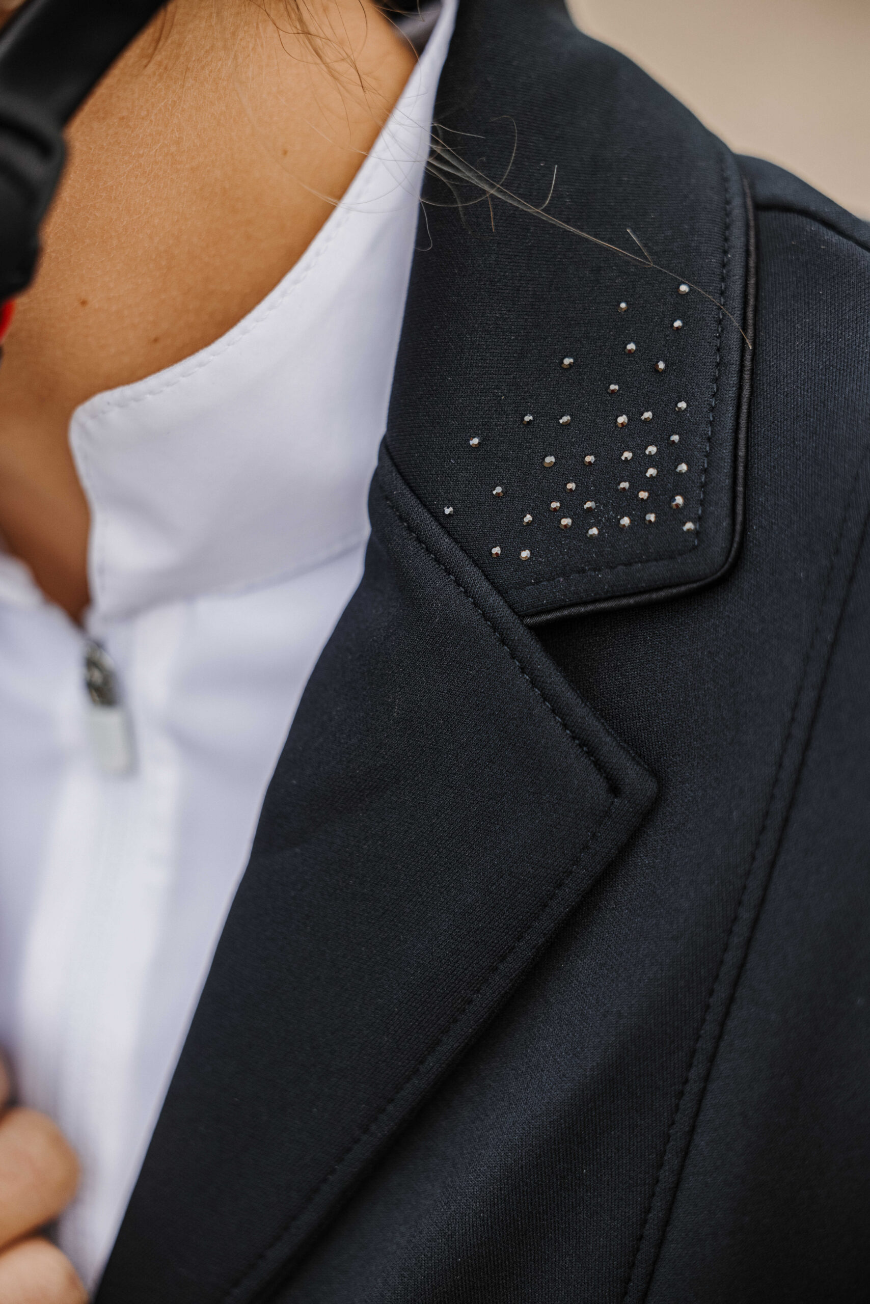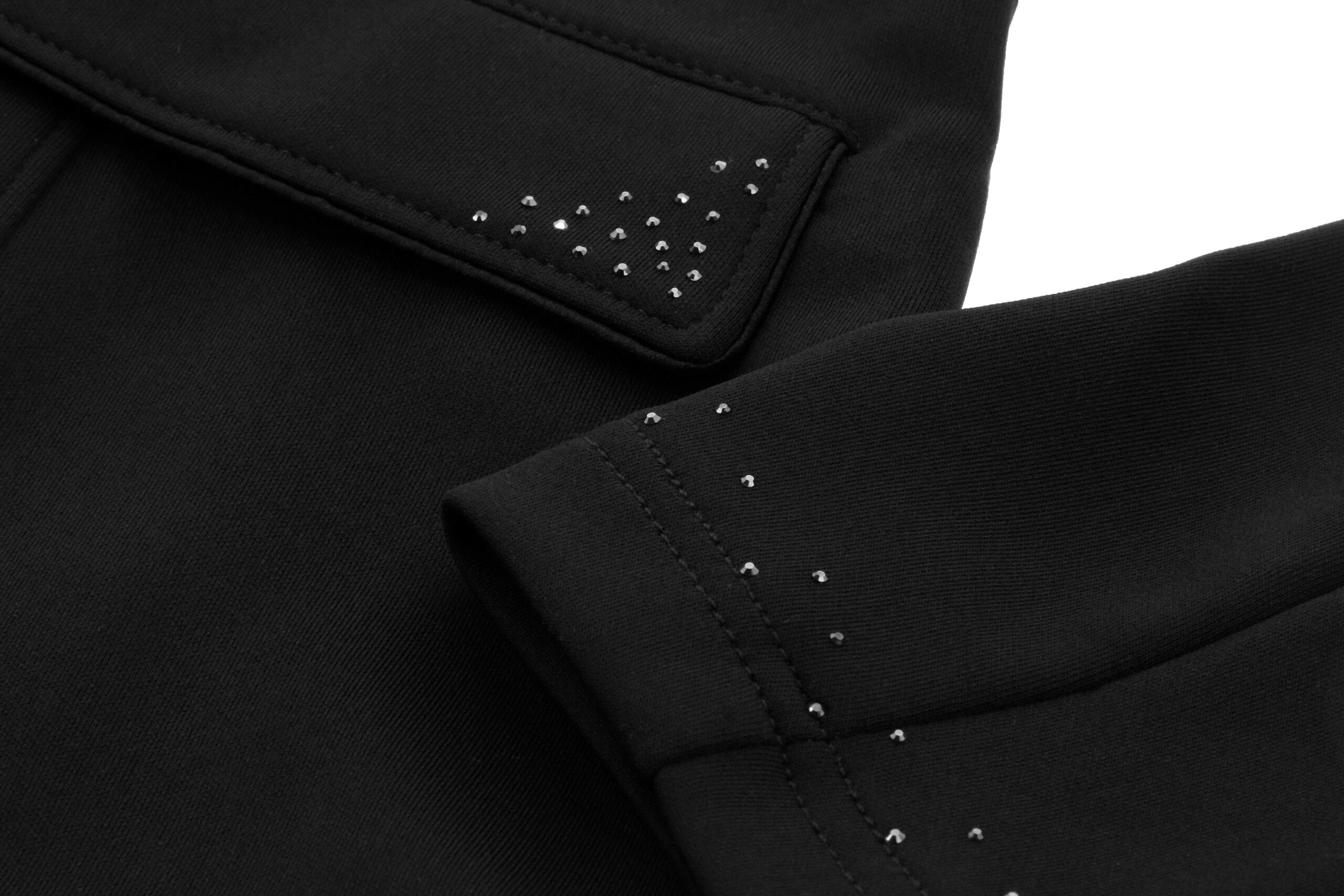 – Fitted and flattering silhouette: Fitted cut with decorative rhinestones on the collar and pocket flaps