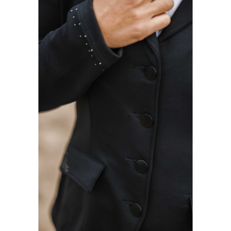 Elegantne naiste võistlusredingot sarjast “Je t’aime”, mis ühendab sportliku mugavuse ja naiseliku välimuse. Kerge ja neljas suunas veniv kangas tagab suurepärase liikumisvabaduse ning mugavuse sadulas.