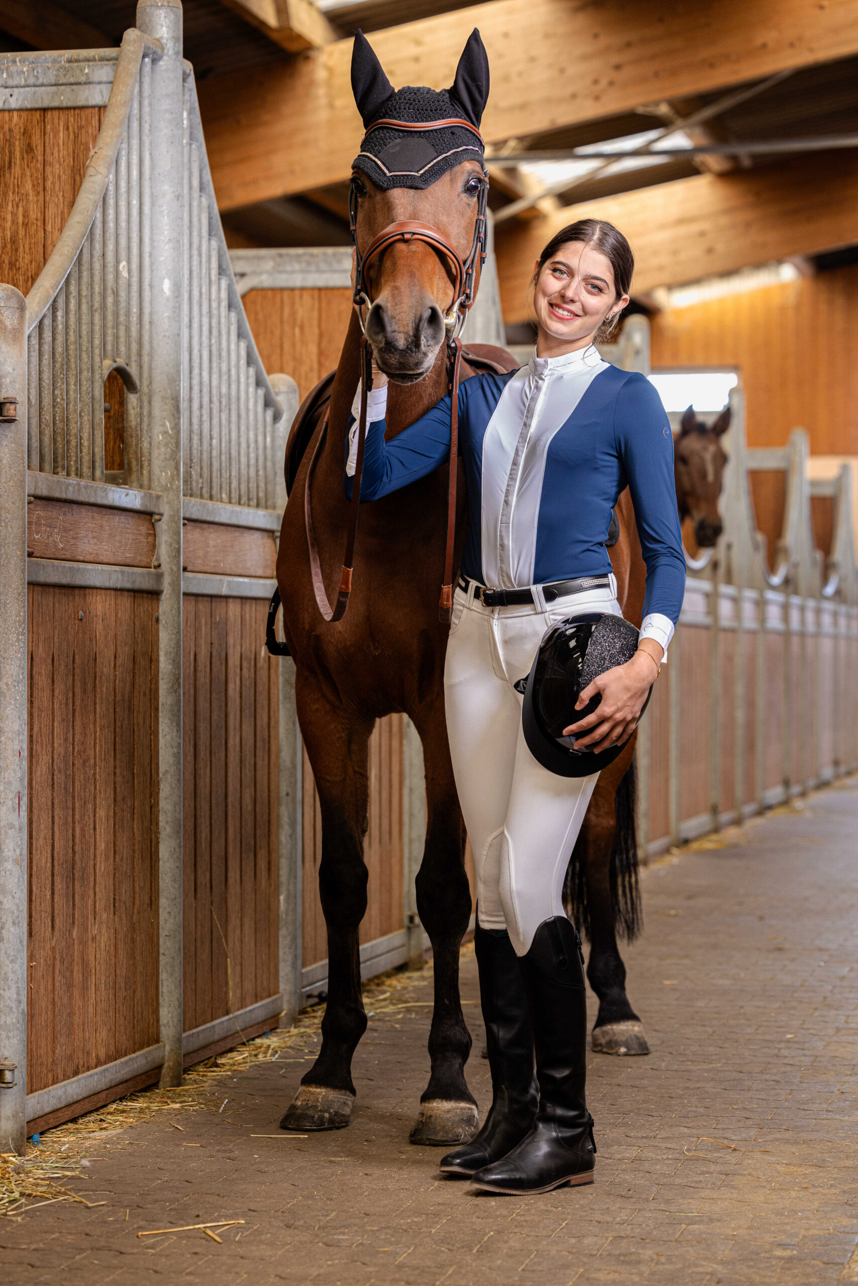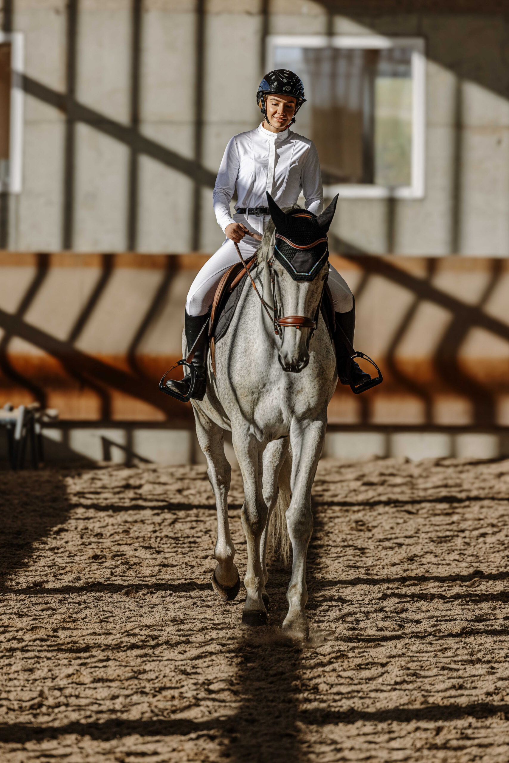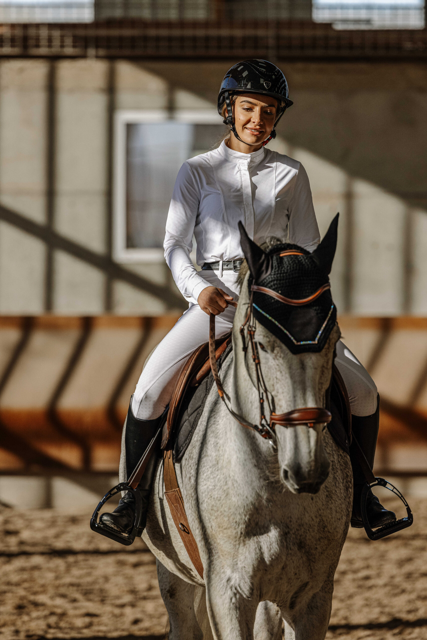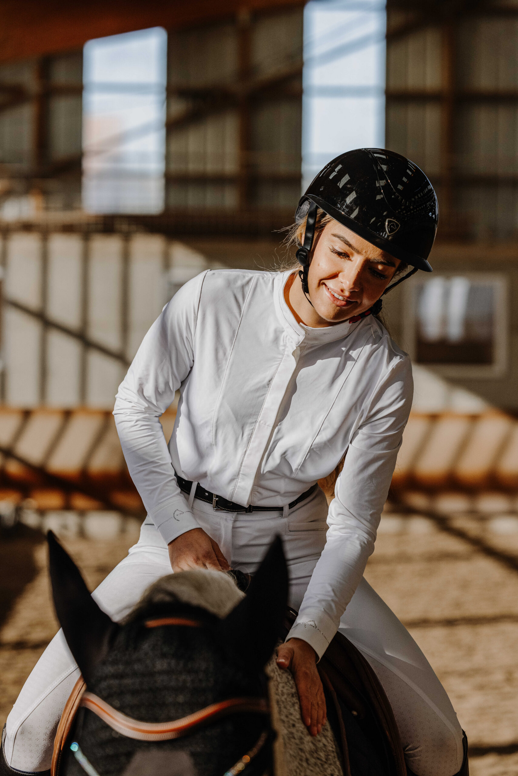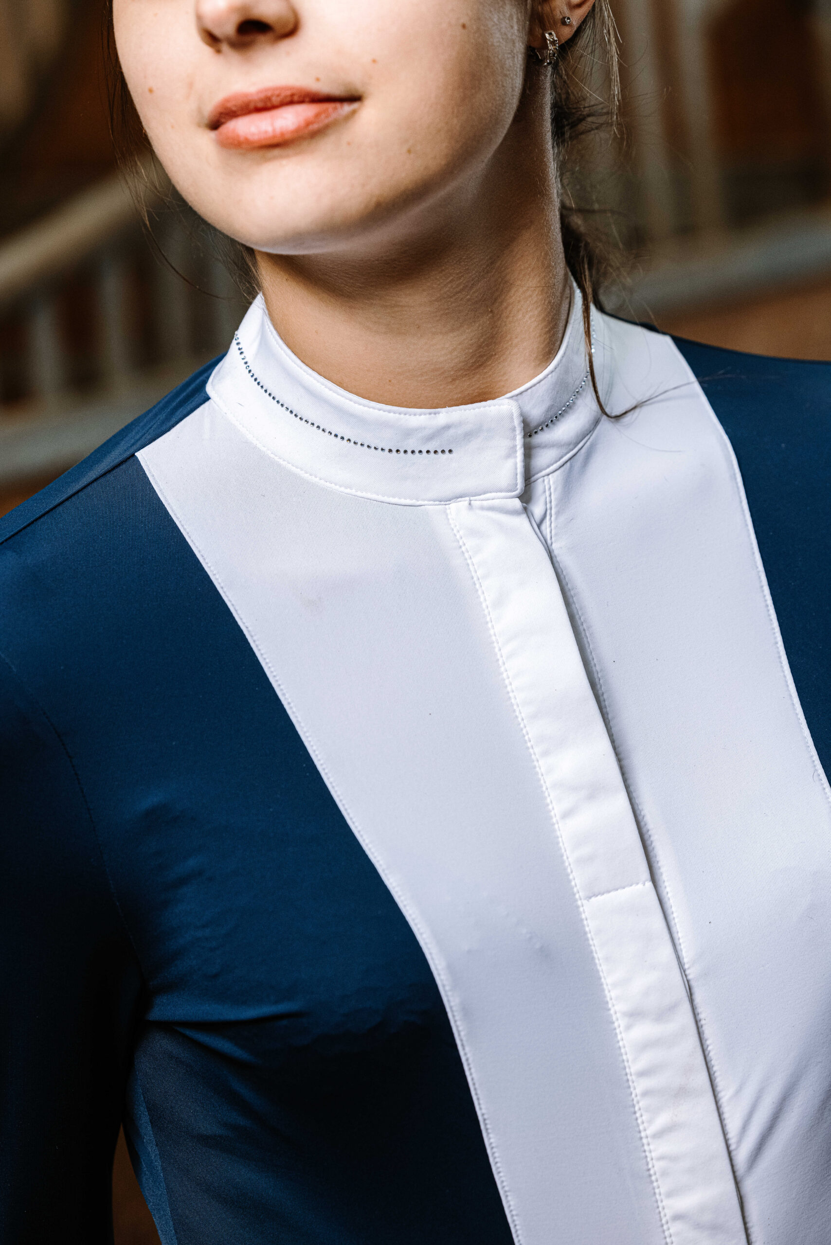 – Tailored fit and white plastron.
