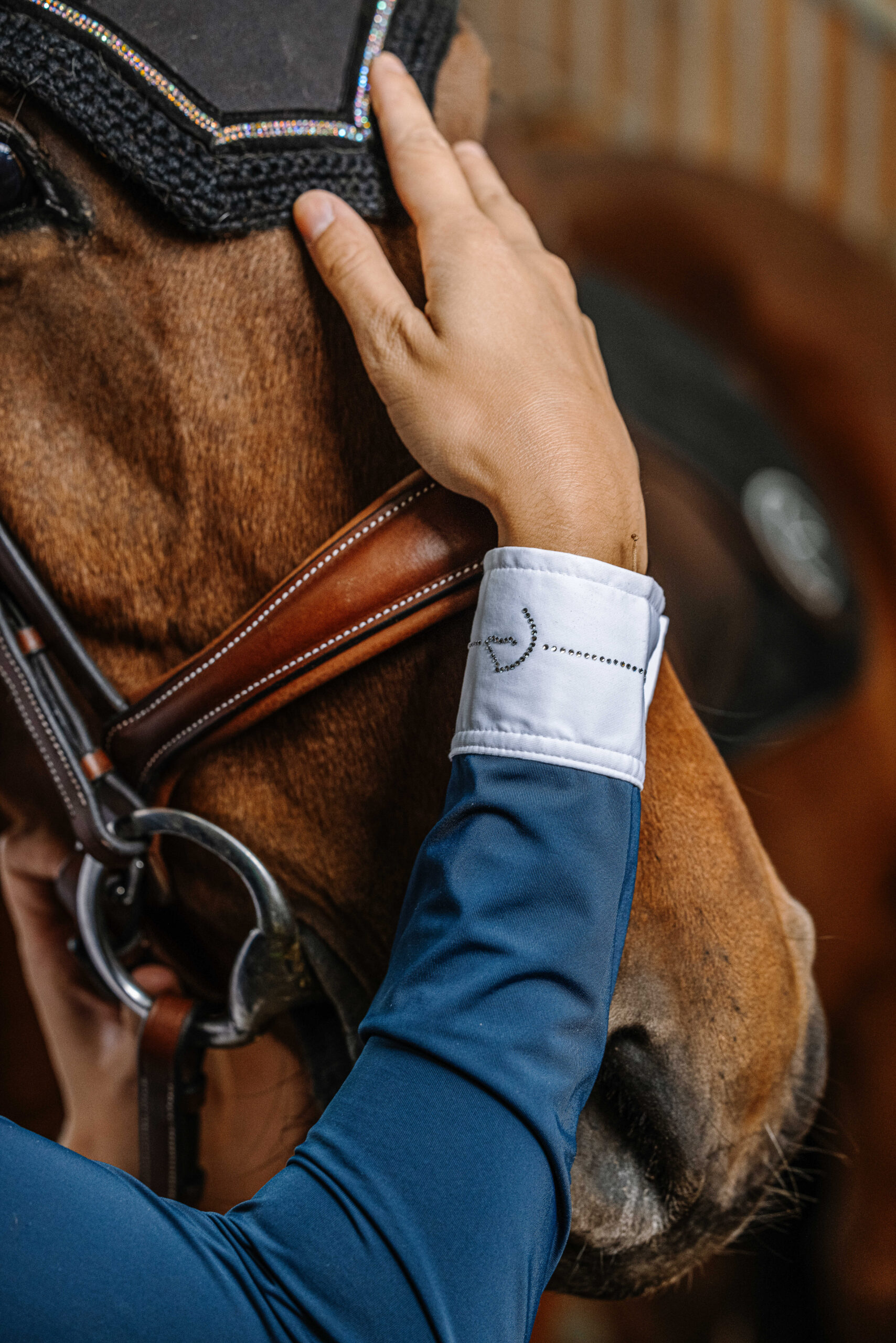 – Cuffs decorated with a fine line of rhinestones.