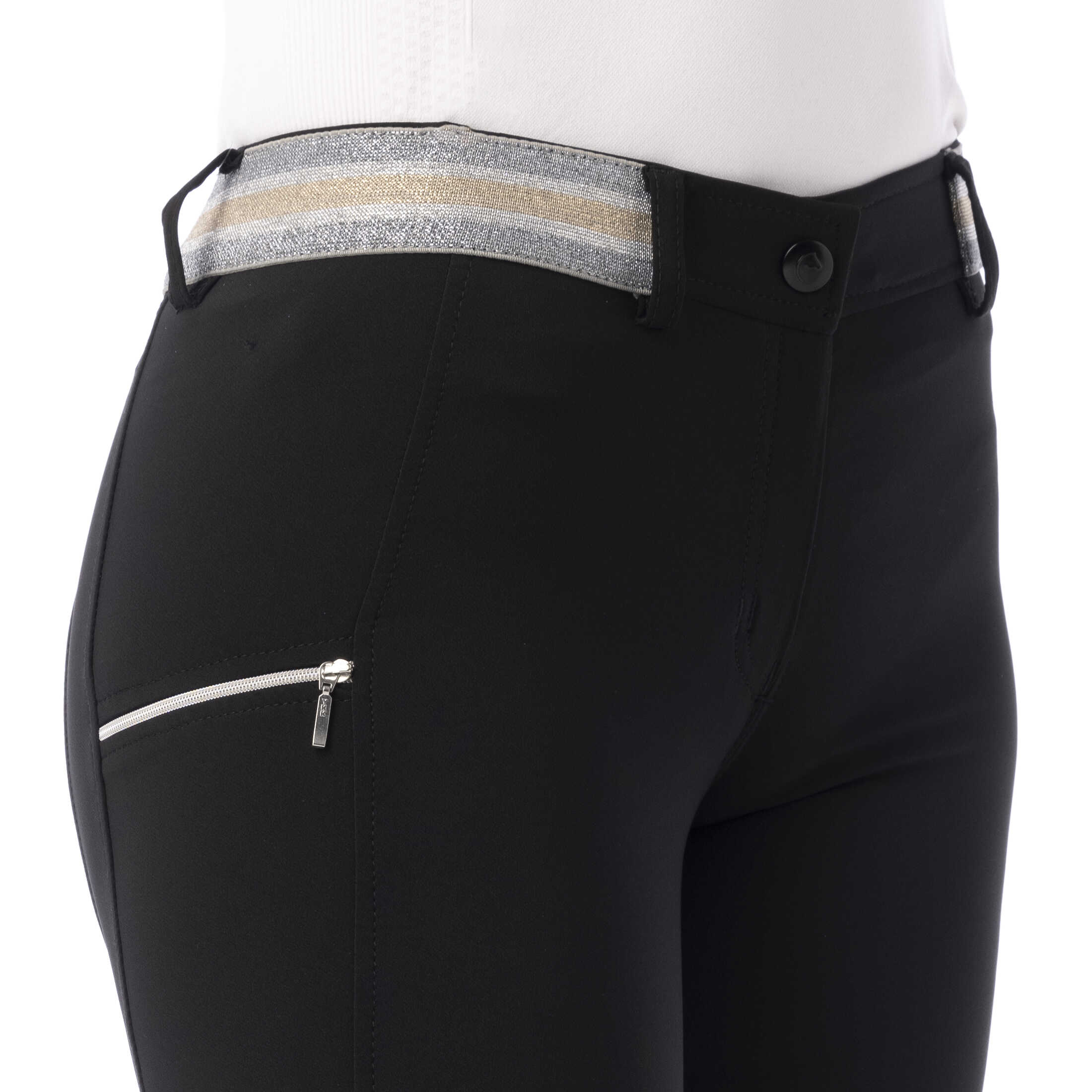 LOR makes a splash with its elastic belt embellished with two-tone sequins and silver zippers on the pockets. Stretchy, lightweight, and breathable fabric. Classic cut. Full, anti-slip silicone gripper for maximum grip. Spandex inserts on the lower legs. Composition: 96% polyester, 4% elastane. Machine wash at 30°C.