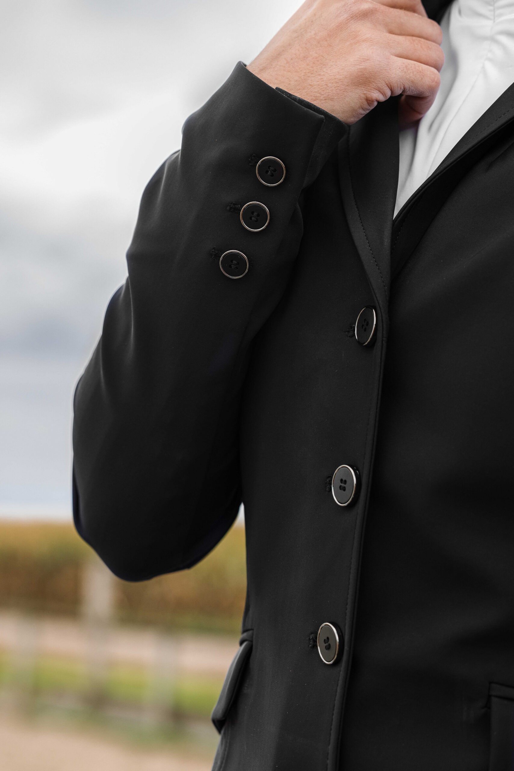 – Figure-hugging fit: Refined, ultra-feminine silhouette with a waist seam, double pleats on the back, and laser-cut details.