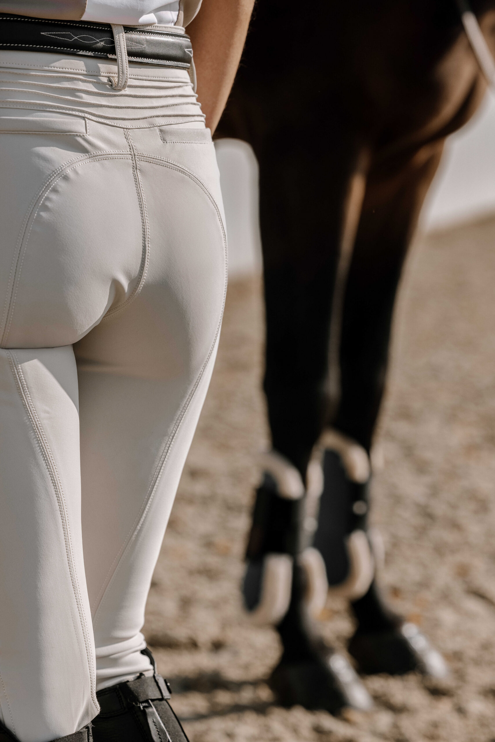 – Modern design: Close-fitting, rhinestone details on the left thigh, and a smocked waistband for optimal freedom of movement.