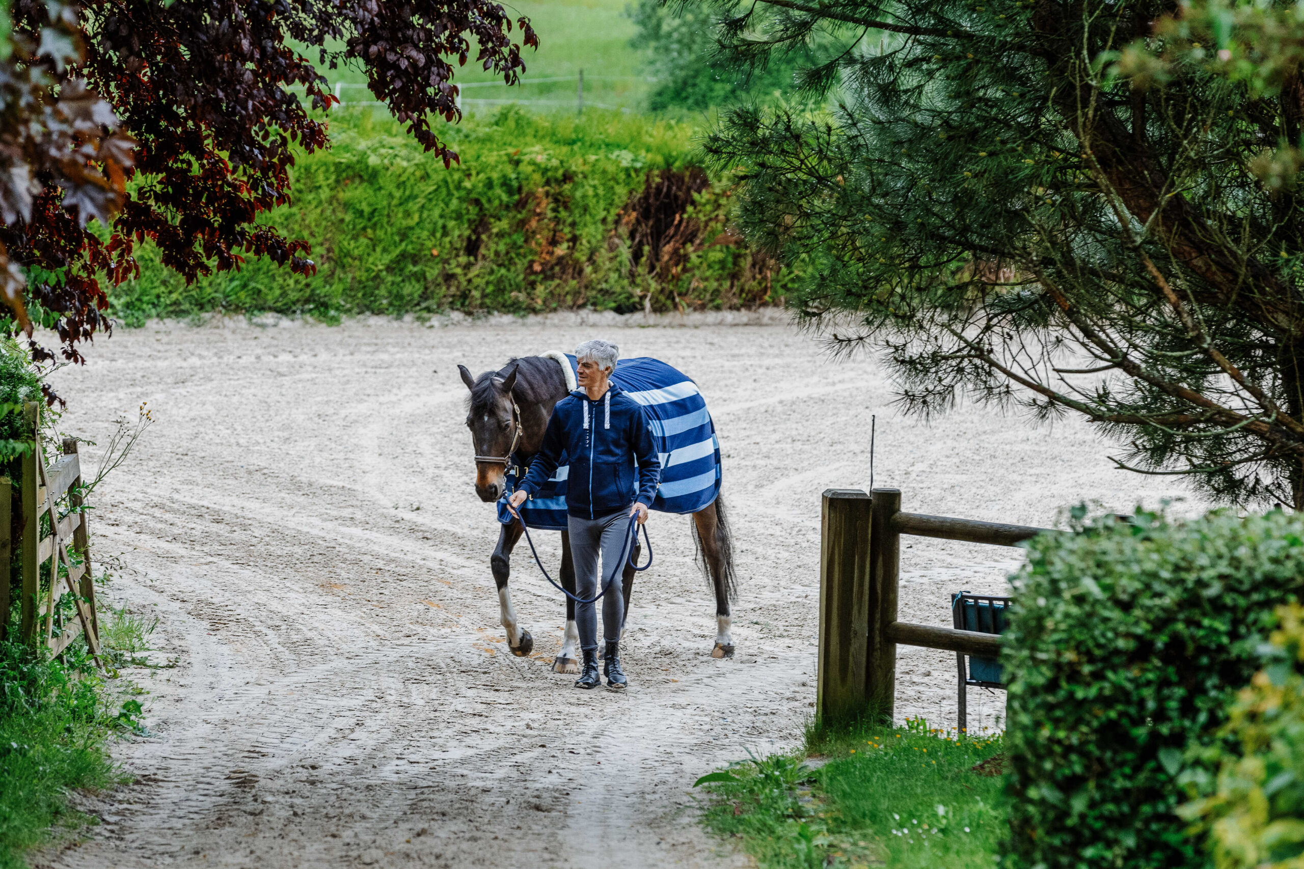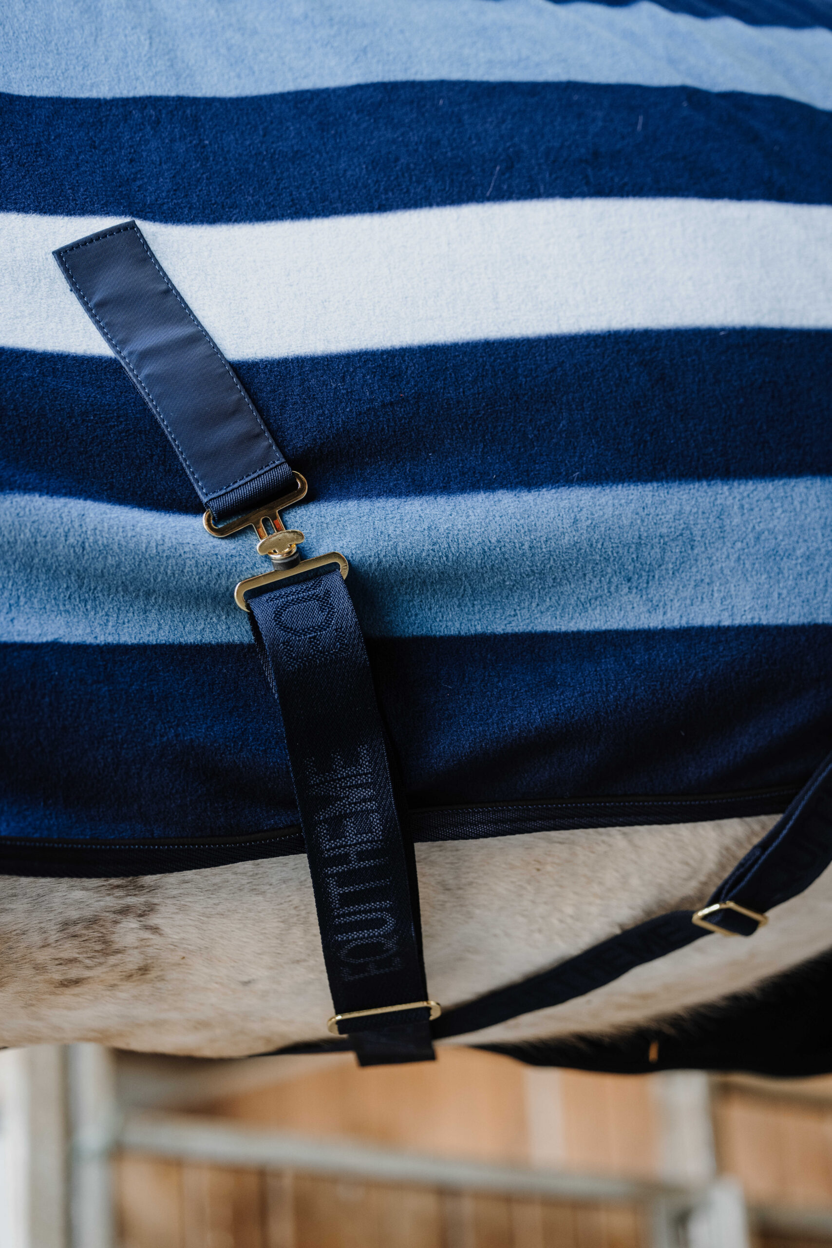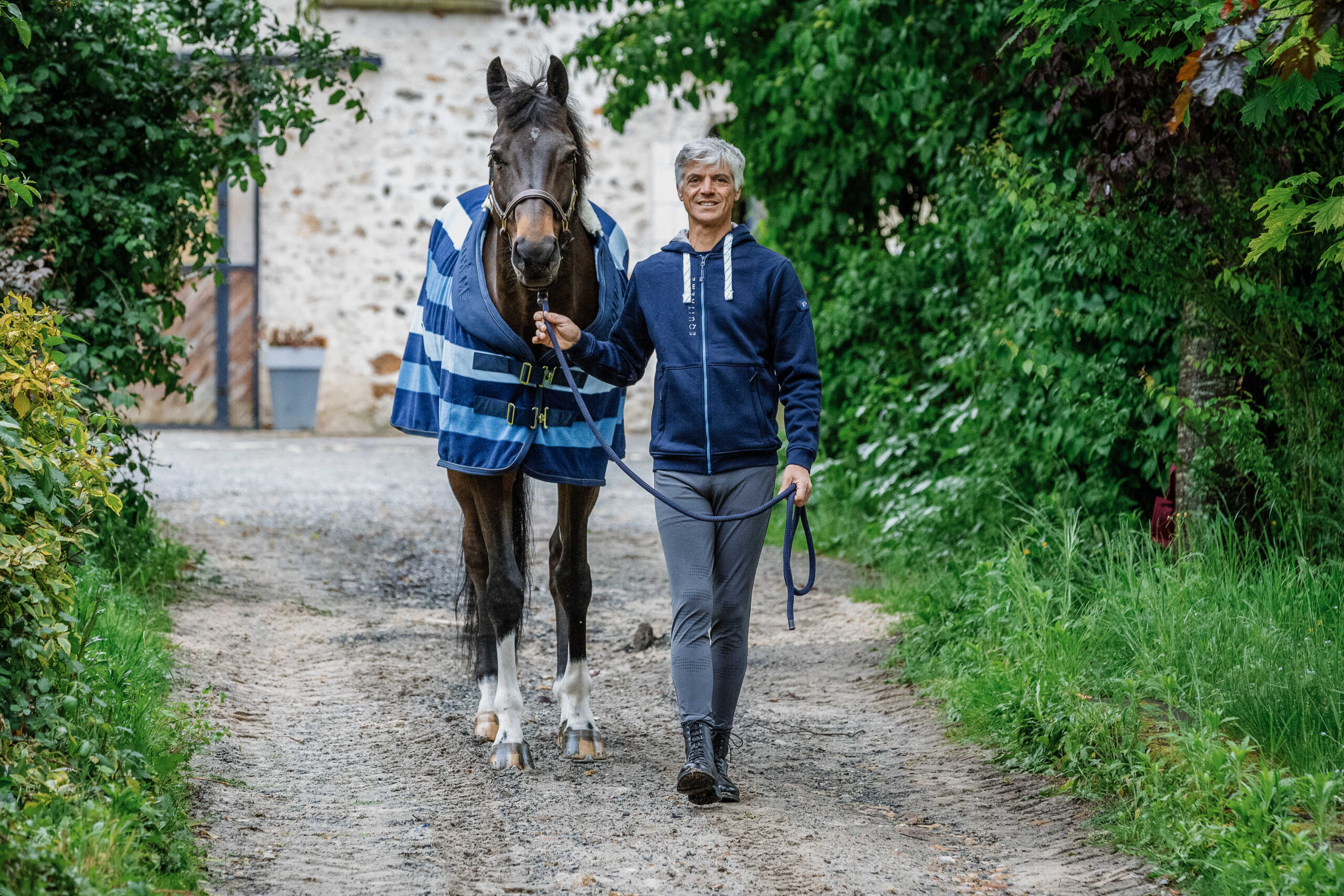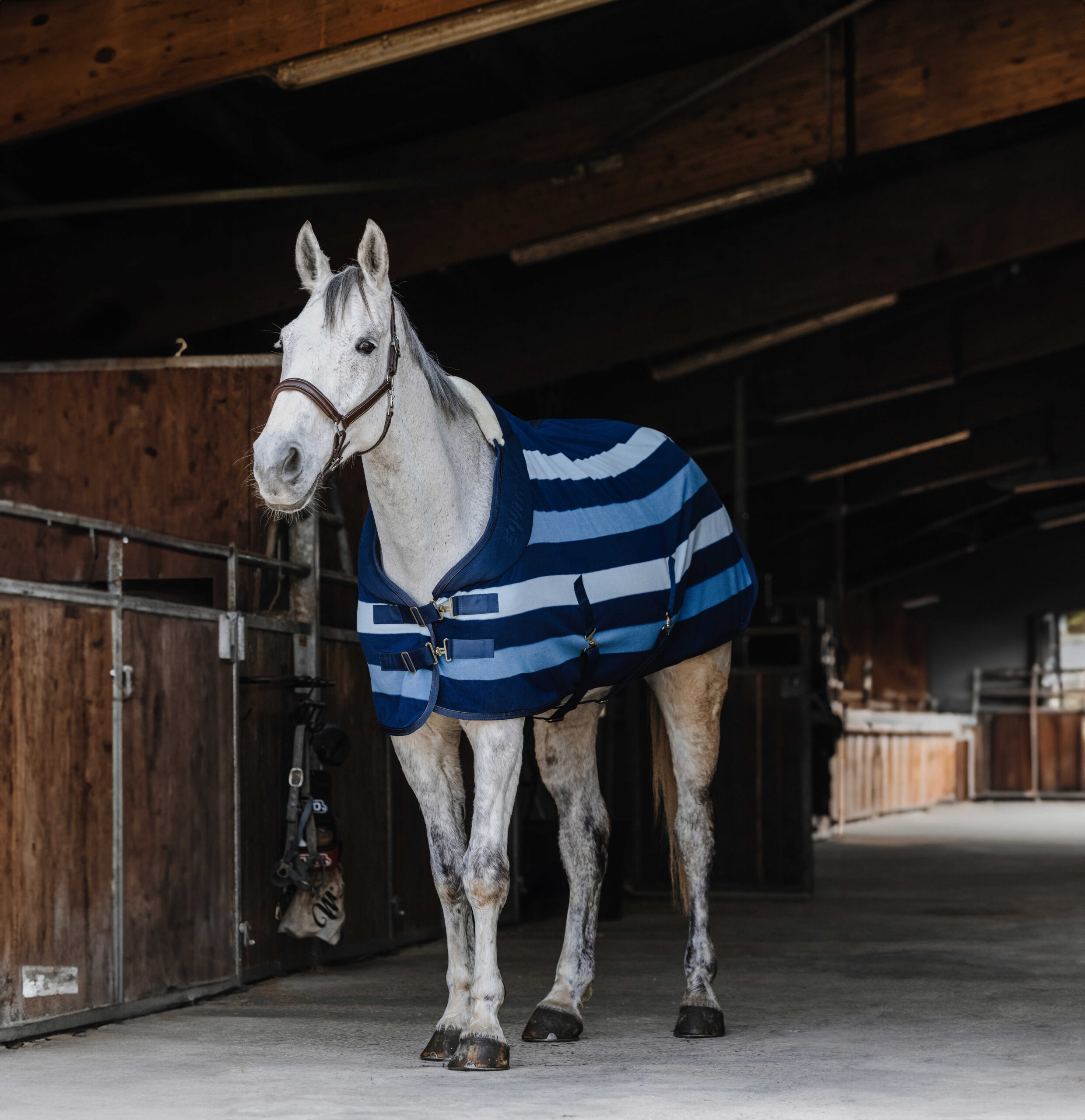 Elegantne ja mugav fliistekk klassikalises Newmarket-stiilis mustriga, mida on värskendatud modernsete siniste ja beežide toonidega. Soe ja hingav fliiskiud hoiab hobuse mõnusalt soojas ning tagab hea õhuringluse. Kaelaosa on kärgmustris tepitud ning varustatud 3D EQUITHÈME logoga ja sünteetilise lambakarvast pehmendusega, mis pakub lisamugavust.