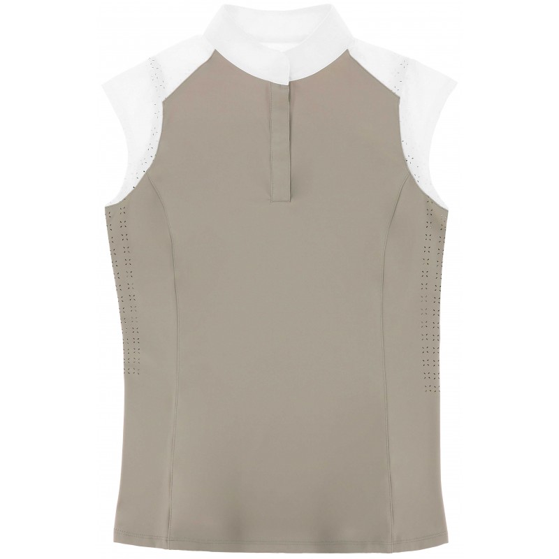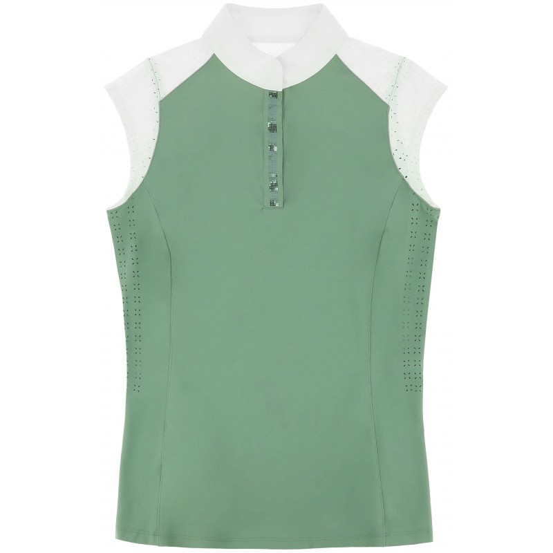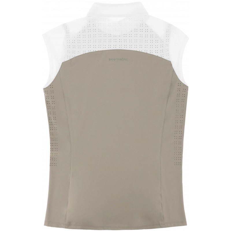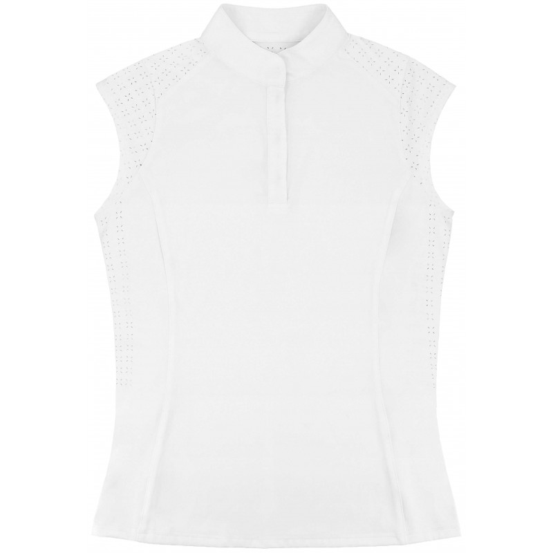 Elegant and technical women’s sleeveless show polo shirt.