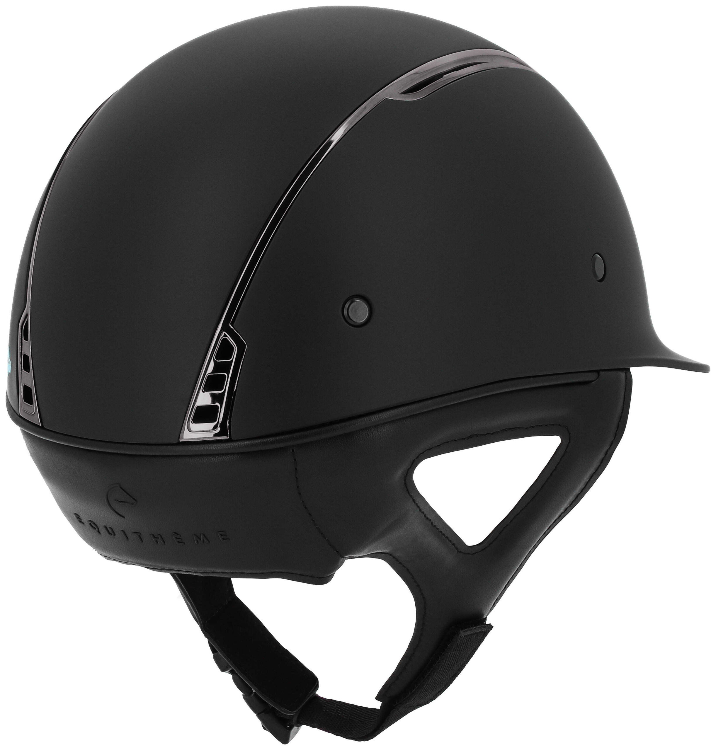 – Side fastening system and leather chin strap with quick-release buckle and adjustable Velcro