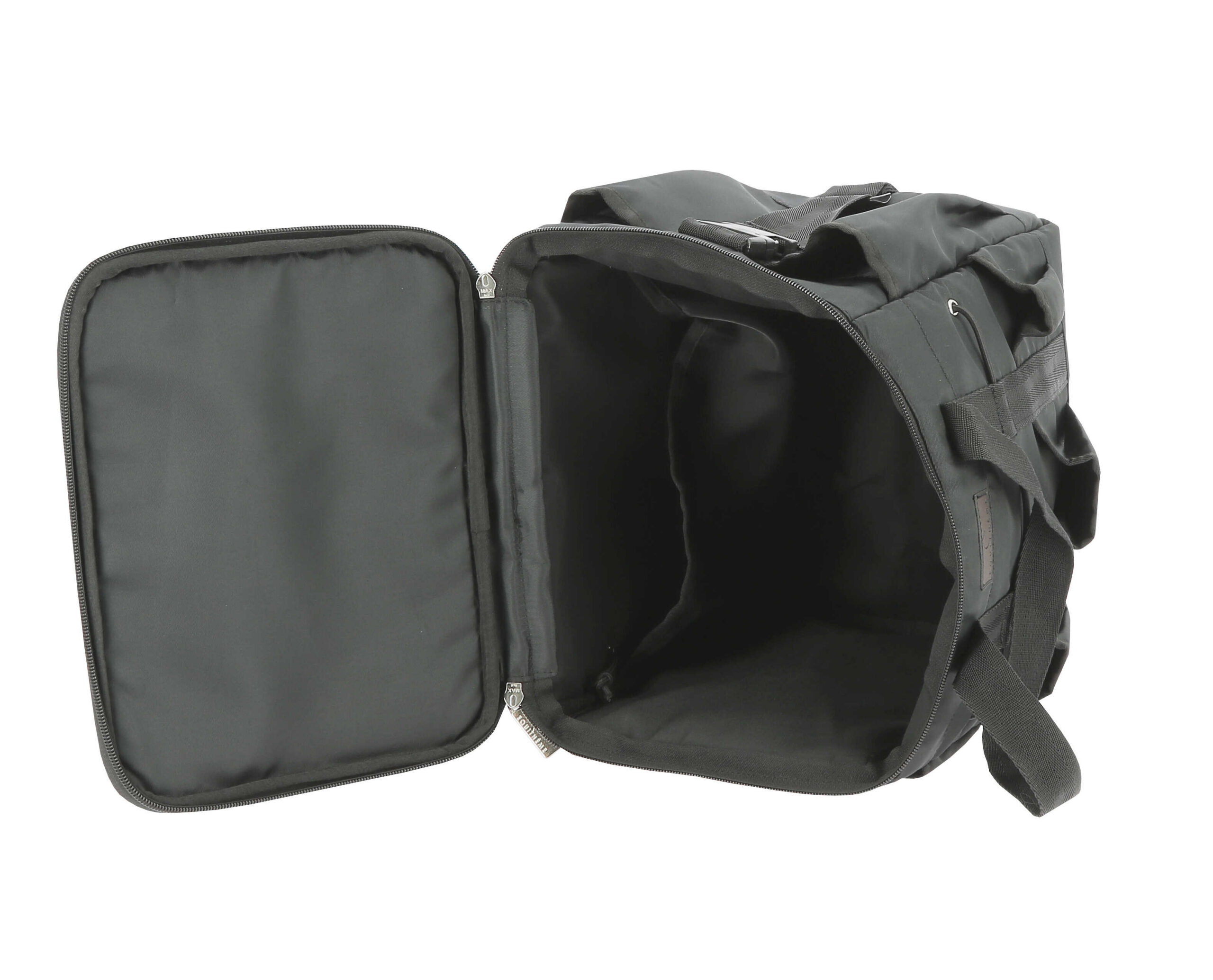 – Equipped with an interior pocket. Outside, there are six small side pockets with elastic bands for storing bottles or other tall items.