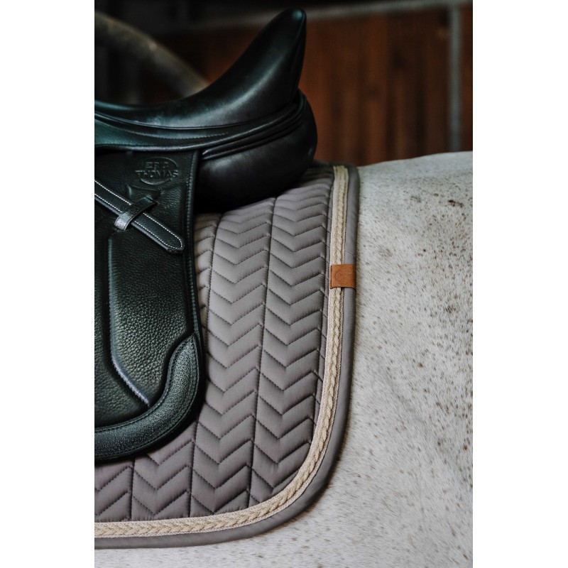 Saddle pad in 100% polyester with light braided edging on ribbon