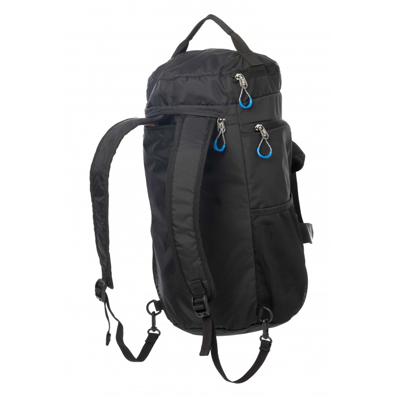 – Carrying handles, removable shoulder straps, and straps that can be stored in a zippered pocket on the back.