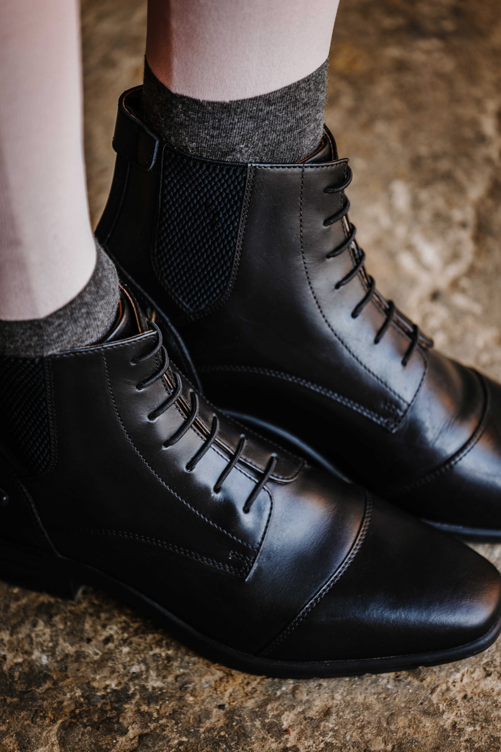 – Perfect fit: Elastic laces at the front, YKK zipper at the back with snap-tab protection.