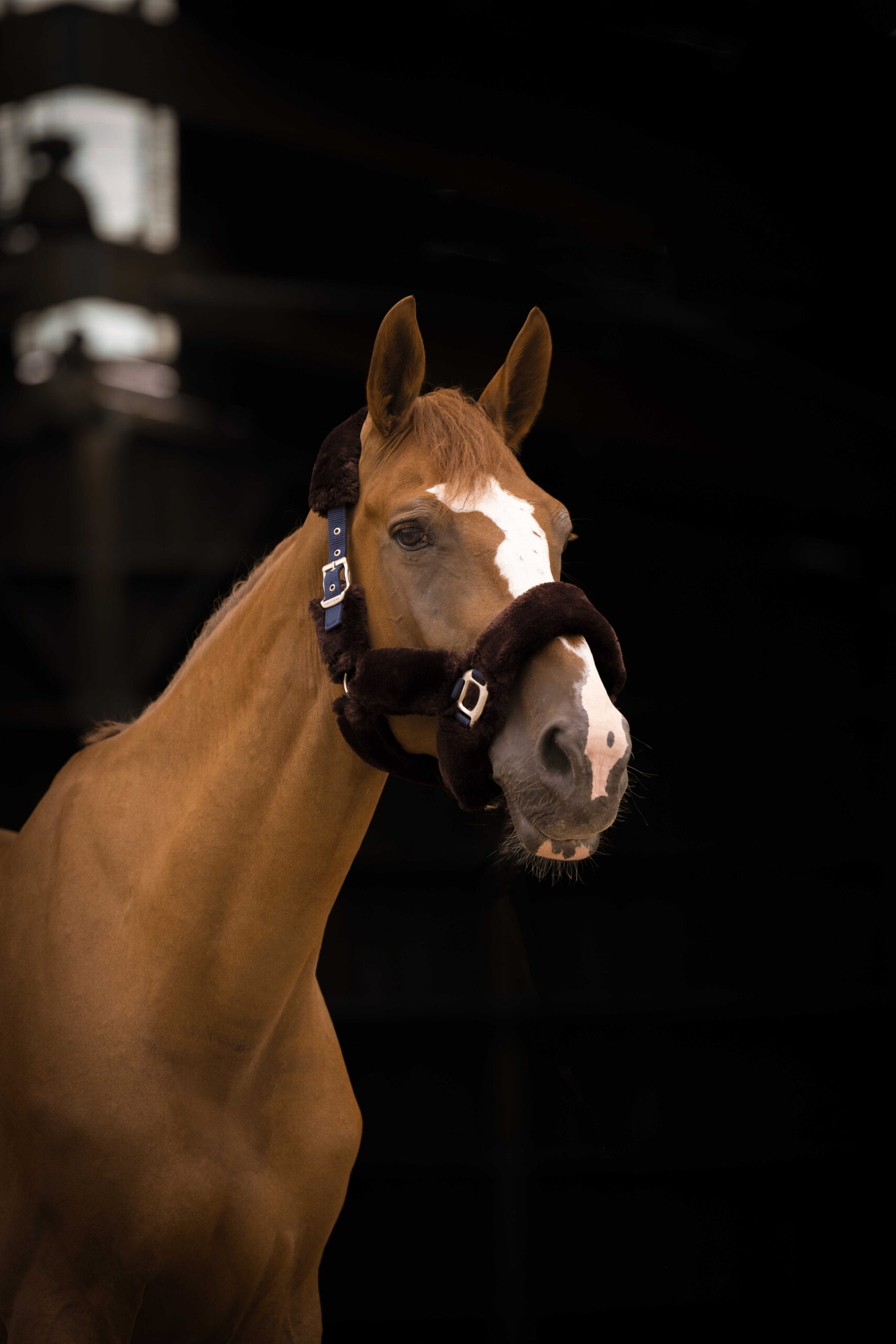 Polypropylene halter, fully covered with synthetic lambskin. Satin-finished zinc buckle.