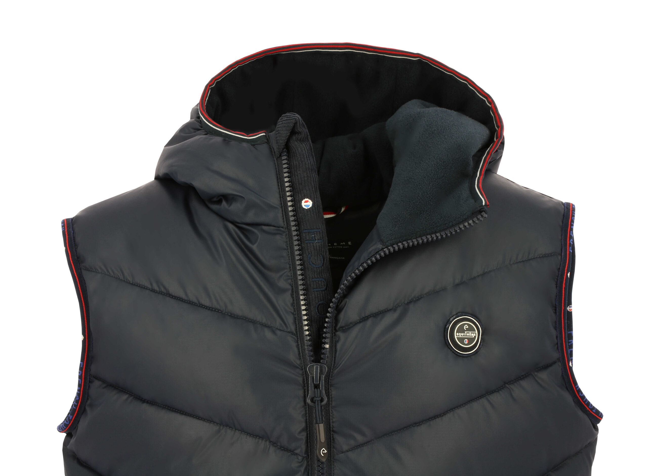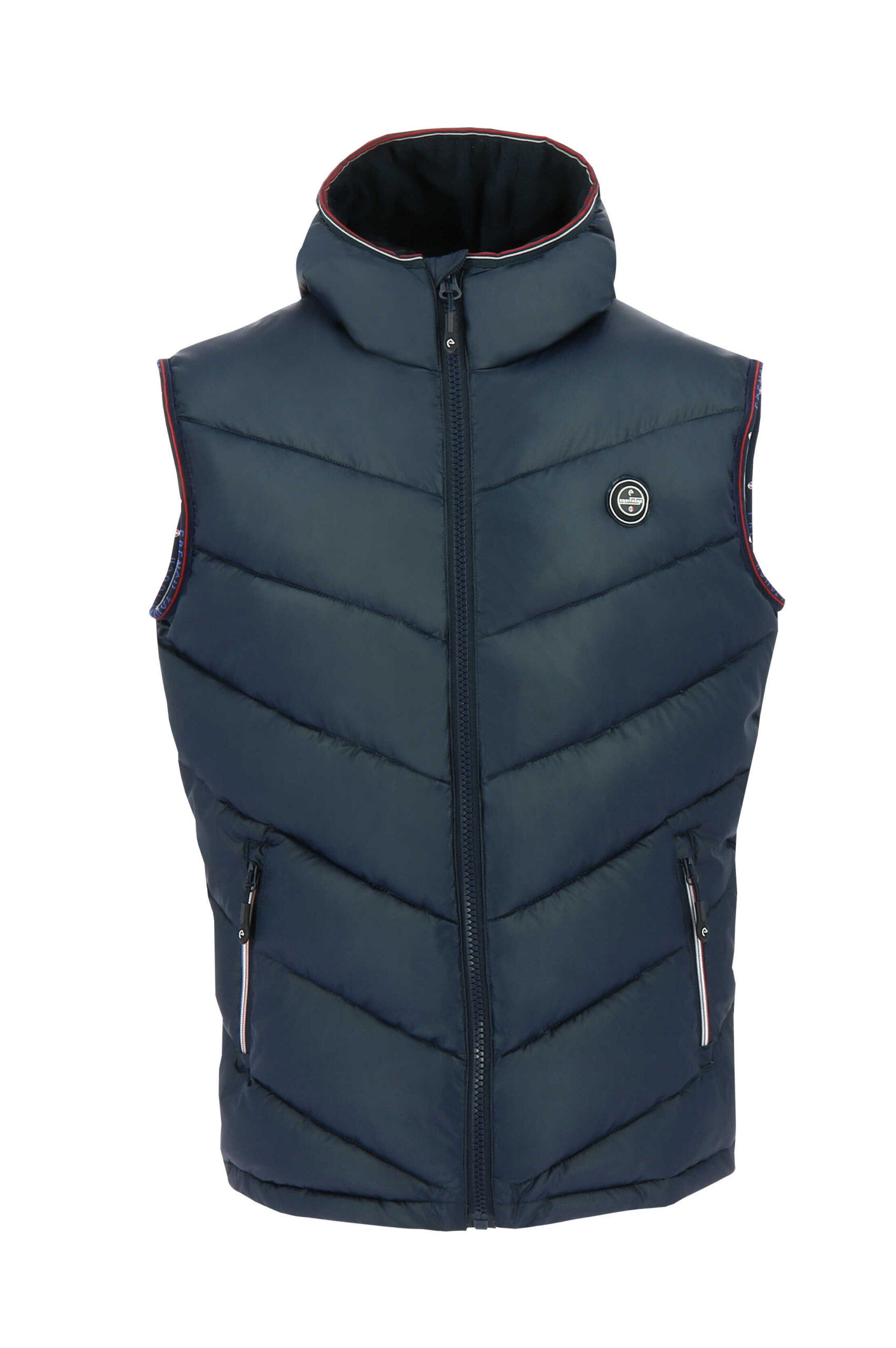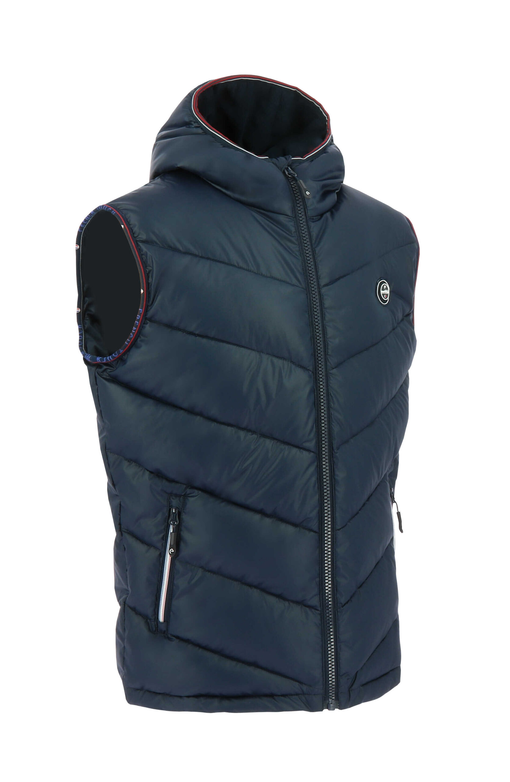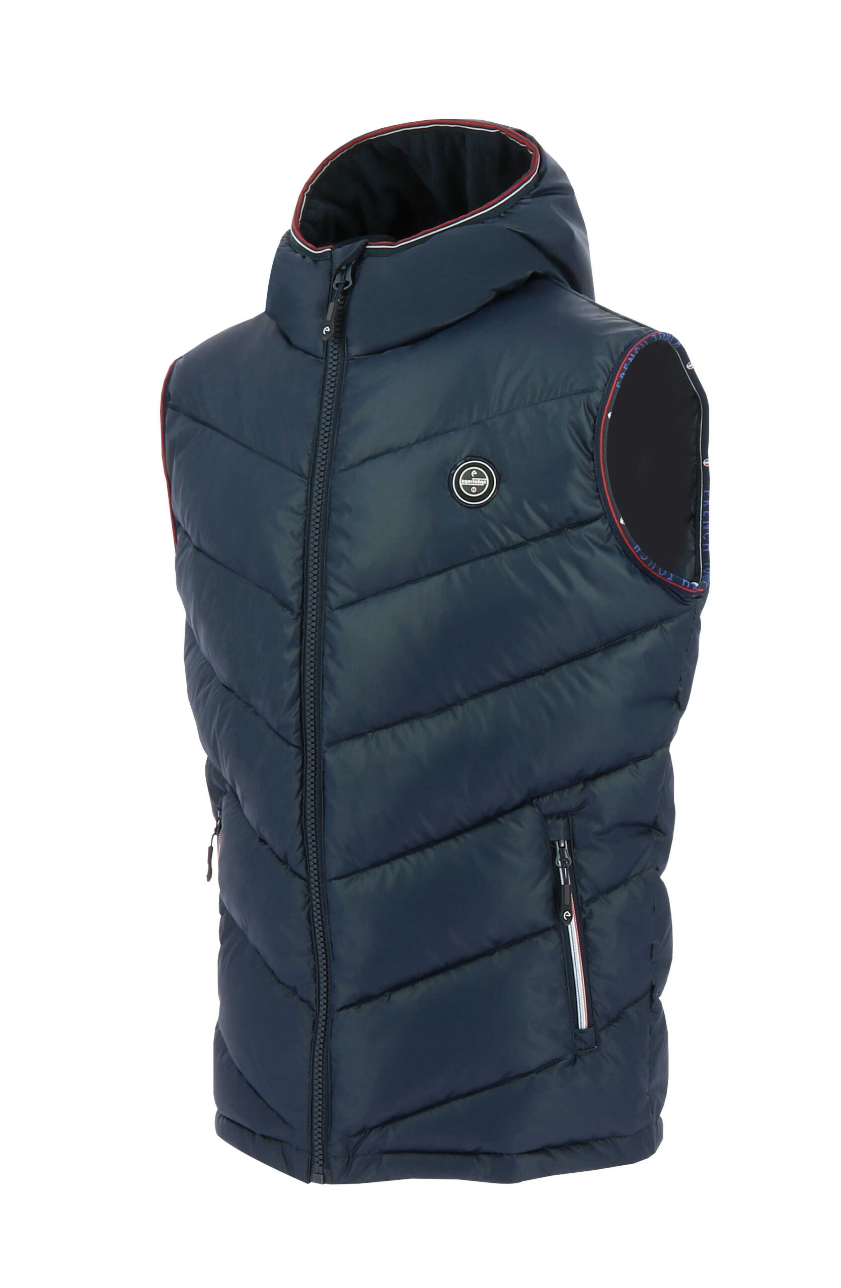 Gilet sJahre sleeves quilted and warm thanks to its “ball padding” filling.FEATURESWater repellent: The outer fabric has undergone a DWR (Durable Water Repellent) water repellent treatmentIsolation: polyester fiber quilting FEATURES- front zip closure- zipped hand pockets- hood attachment system at the back- elastic bias at the hood edge and armholes- straight cutMain material: 100% recycled polyesterPadding: 100% polyester.Green impact label.