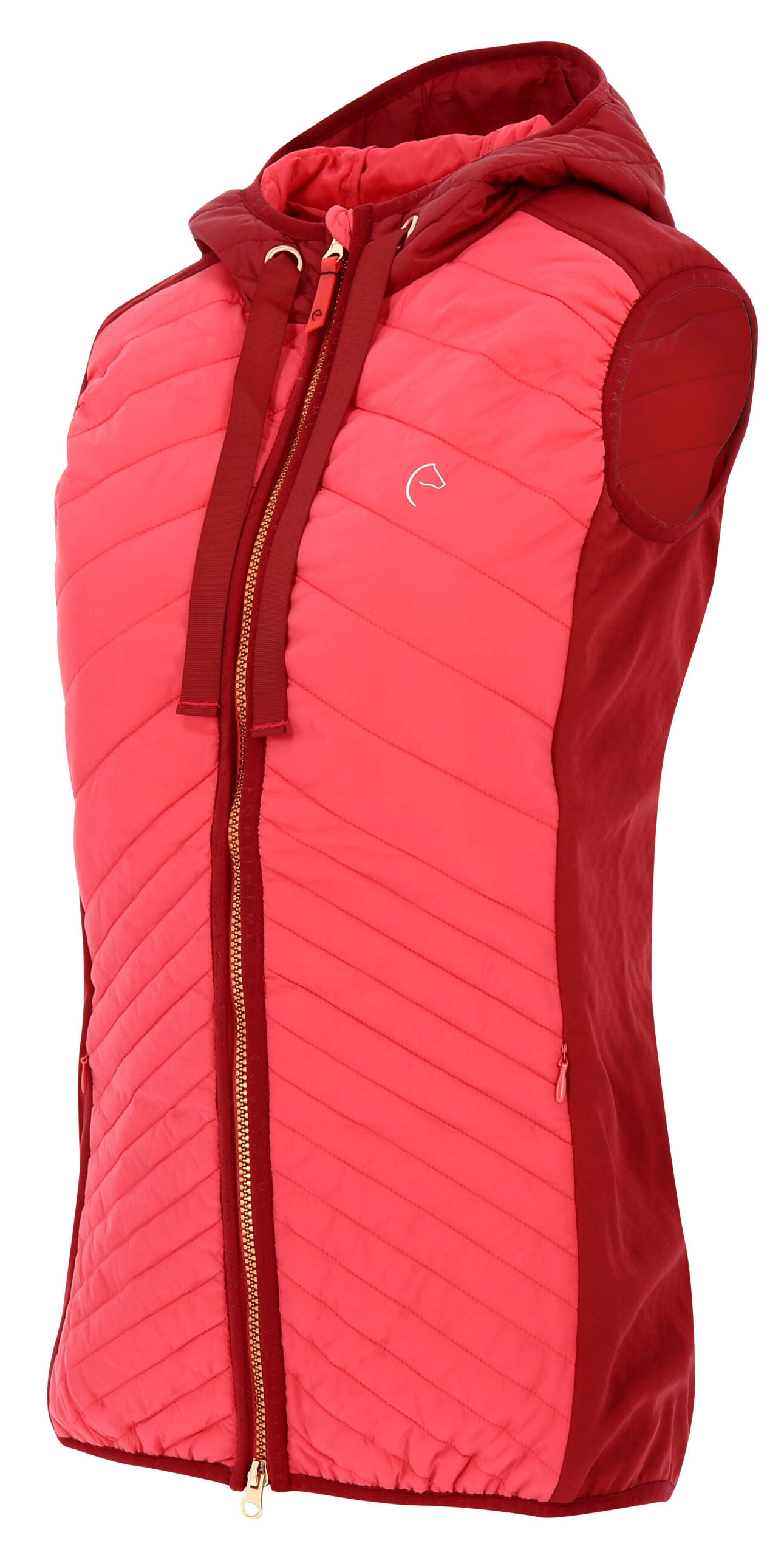 Hooded down jacket, sleeveless, two-material. Honeycomb side, both aesthetic, elastic, comfortable and breathable. Body: quilted polyamide for better insulation and optimal warmth. Two-way zipper at the front, zippered hand pockets. Elastic bias at the bottom of the sleeves, around the hood and at the bottom of the jacket for better ergonomics and to prevent air from entering. Tightening system for the hood for a better fit. Composition: 100% nylon. Machine washable at 30°C.