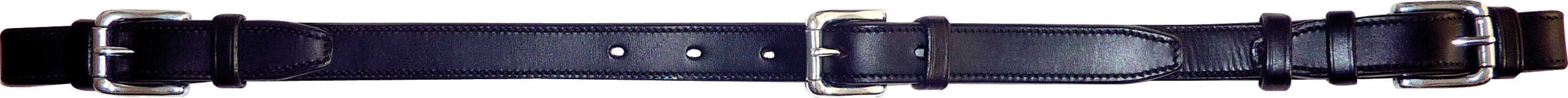 – Central adjustment with a buckle and attachment to the stirrup with chrome-plated brass buckles on both sides.