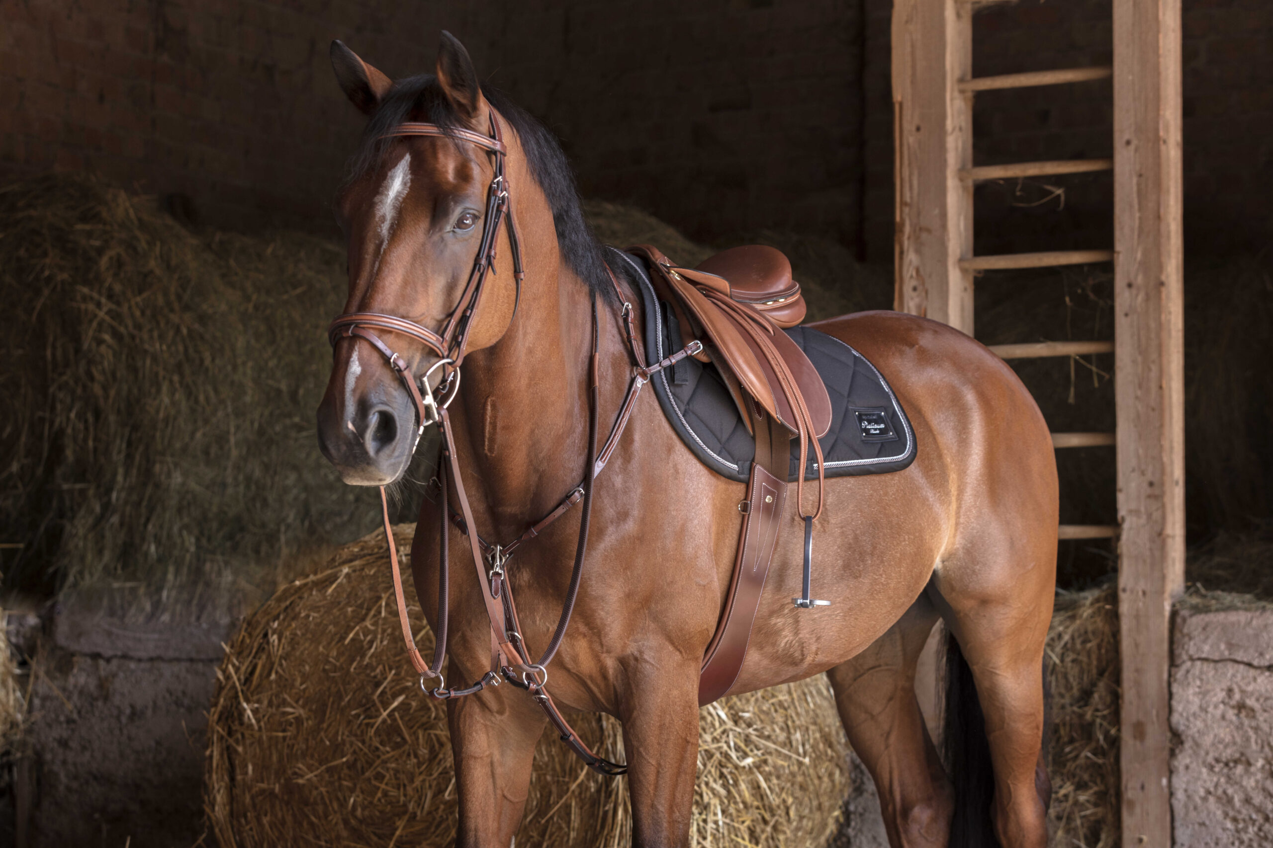 – Stainless steel roller buckles on triple elastic straps on each side.