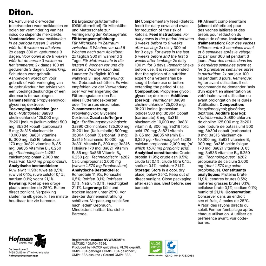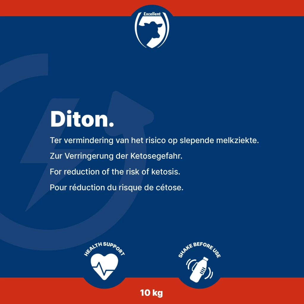 Use Diton to reduce ketosis! It is not without reason that Diton has been the product to reduce ketosis for the last 25 years, because after just three days of use it eliminates the risk of ketosis. It has been a popular product with dairy farmers and experts alike for many years. Moreover, there is now a renewed and improved composition, which is fully in line with the latest standards and insights.