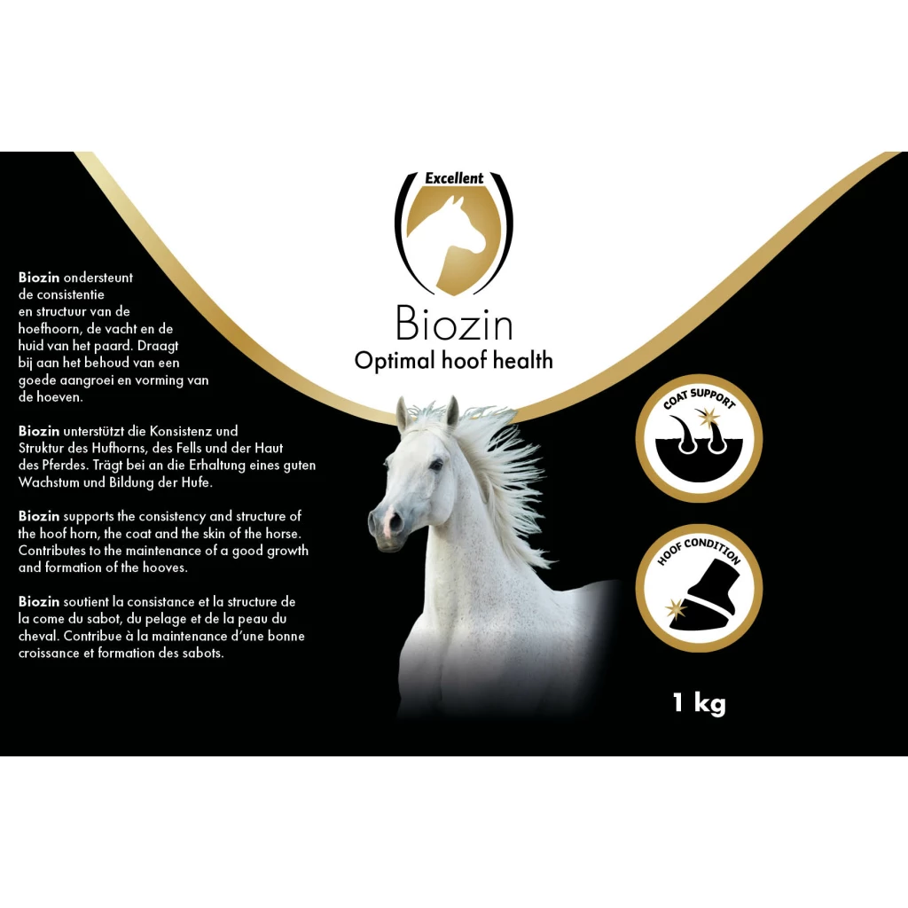Täiendsööt hobustele, mis toetab kabja sarvaine, karvkatte ja naha tervist ning taastumist. Biozin parandab kabja sarvaine konsistentsi ja struktuuri, aitab säilitada tervet ja tugevat kasvu ning toetab kabja head vormi. Tänu õunamaitsele on see hobustele eriti maitsev.