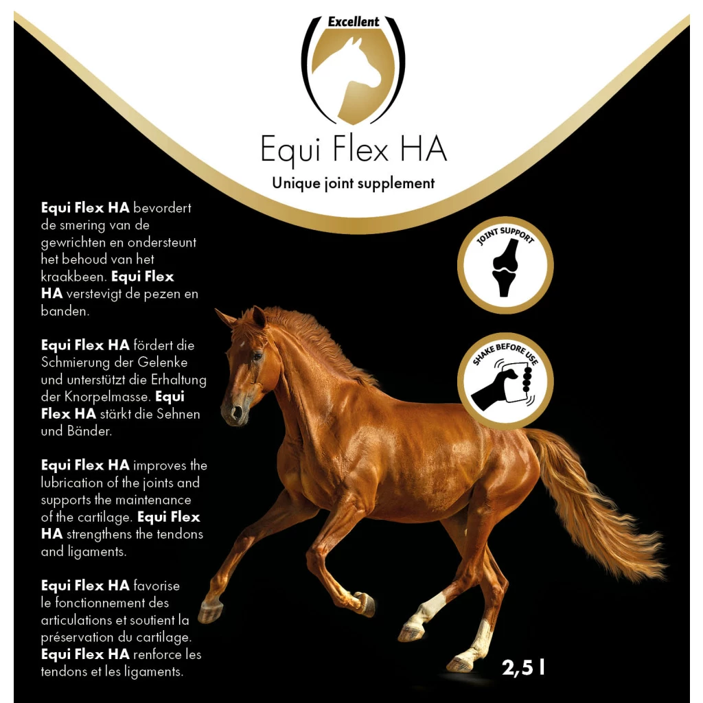 Equi Flex HA aitab hoida liigesed liikuvana, tugevdab kõõluseid, sidemeid ja luid ning toetab kõhre säilimist. Toode sobib ohutult kõigile hobustele, sh sporthobustele, tiinetele märidele ja eakamatele hobustele.
