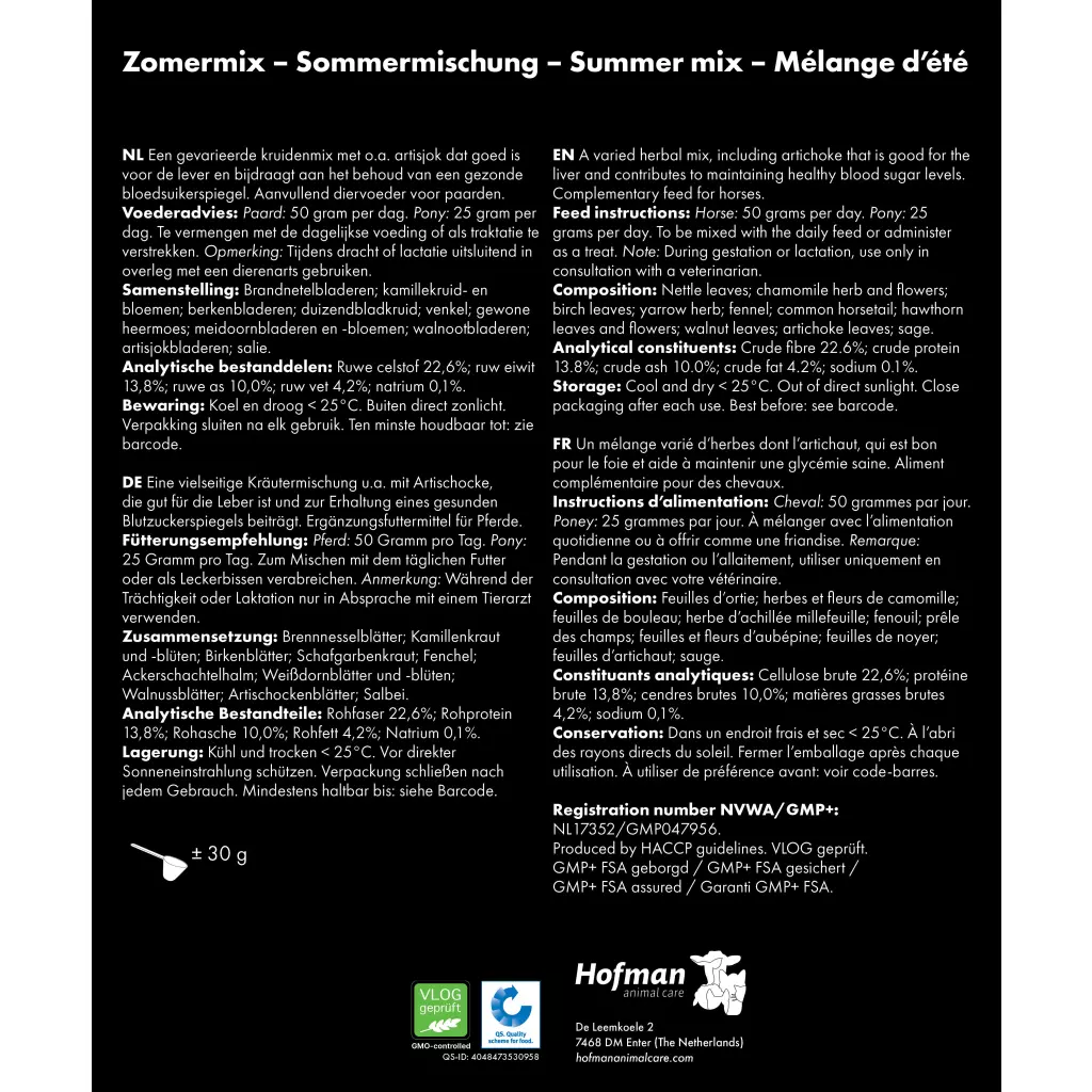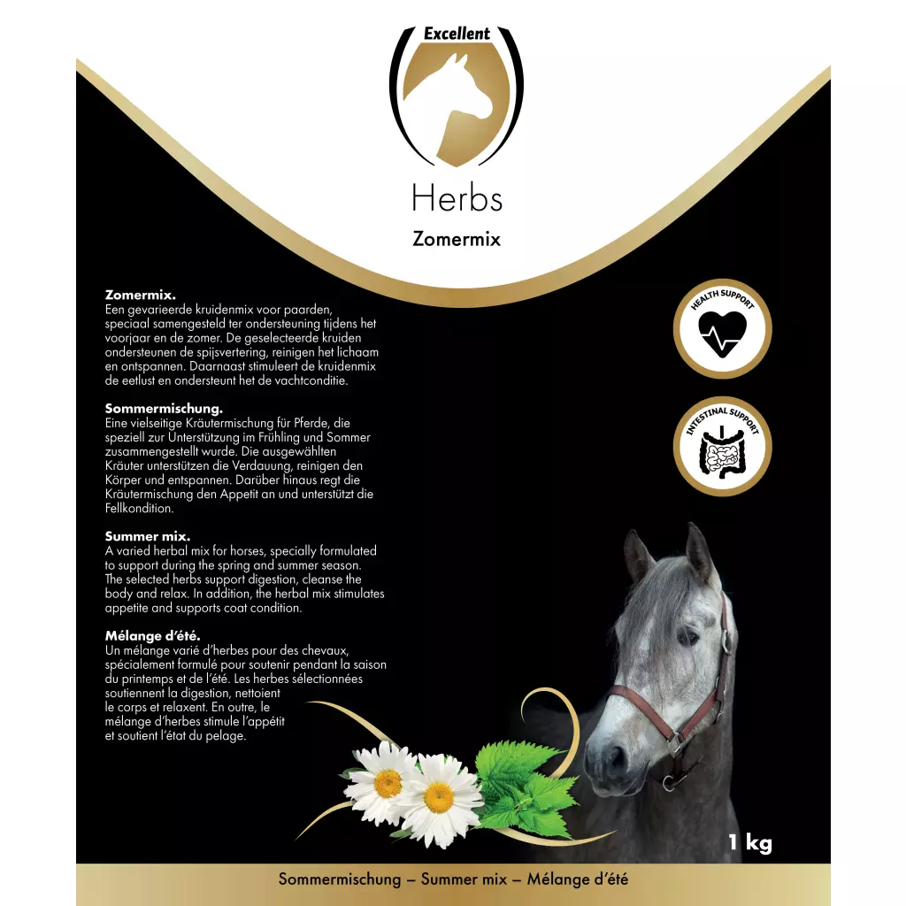 Excellent Horse Herbs Summer Mix is a complementary feed for horses. It provides support during spring and summer. The selected herbs support digestion, cleanse the body and relax. The herb mix also stimulates the appetite and supports coat condition.