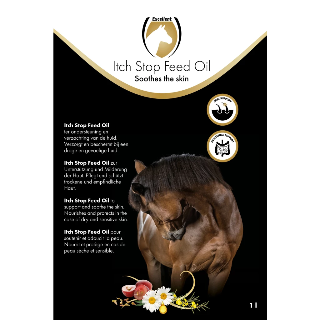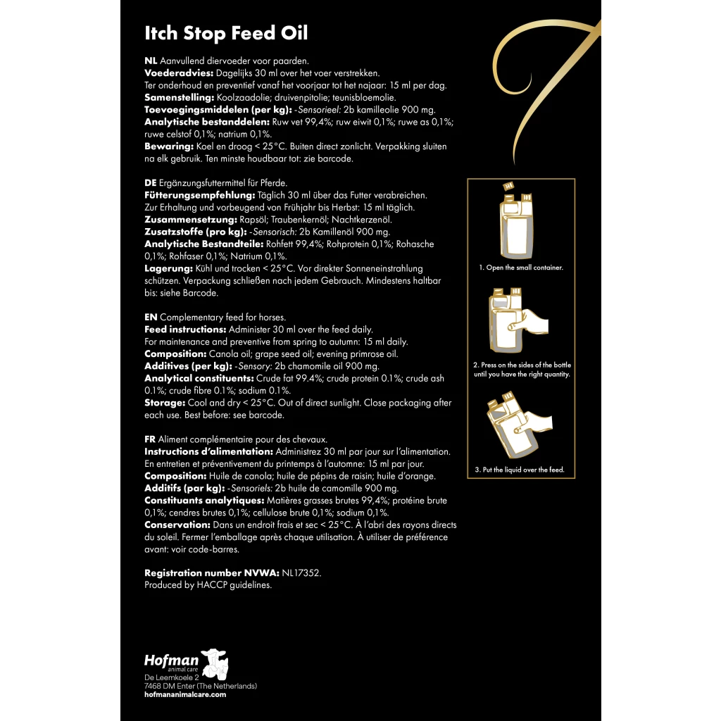 Itch Stop Feed Oil is perfect in combination with the Itch Stop Spray Itch Stop Spray (ITCH0030) to care and soften the skin in case of insect bites.