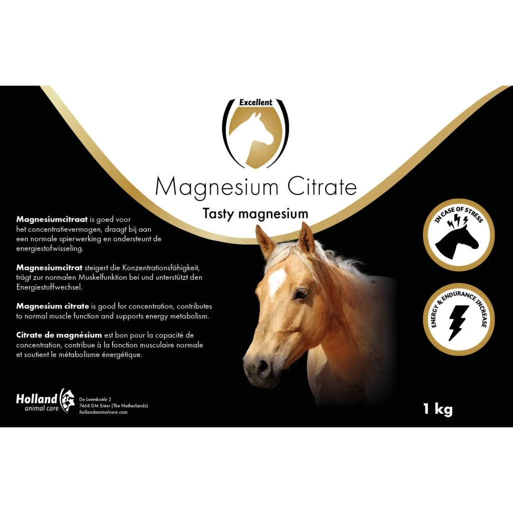 Magnesium is an essential substance for the absorbtion of calcium in the bones and also prevents clogging of calcium in other tissue. Magnesium is especially suitable for showhorses suffering from stress.