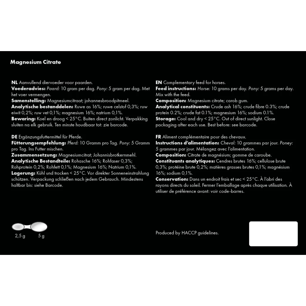 Equi Magnesium Citrate is good for the concentration ability, contributes to normal muscle function and supports the energy metabolism.