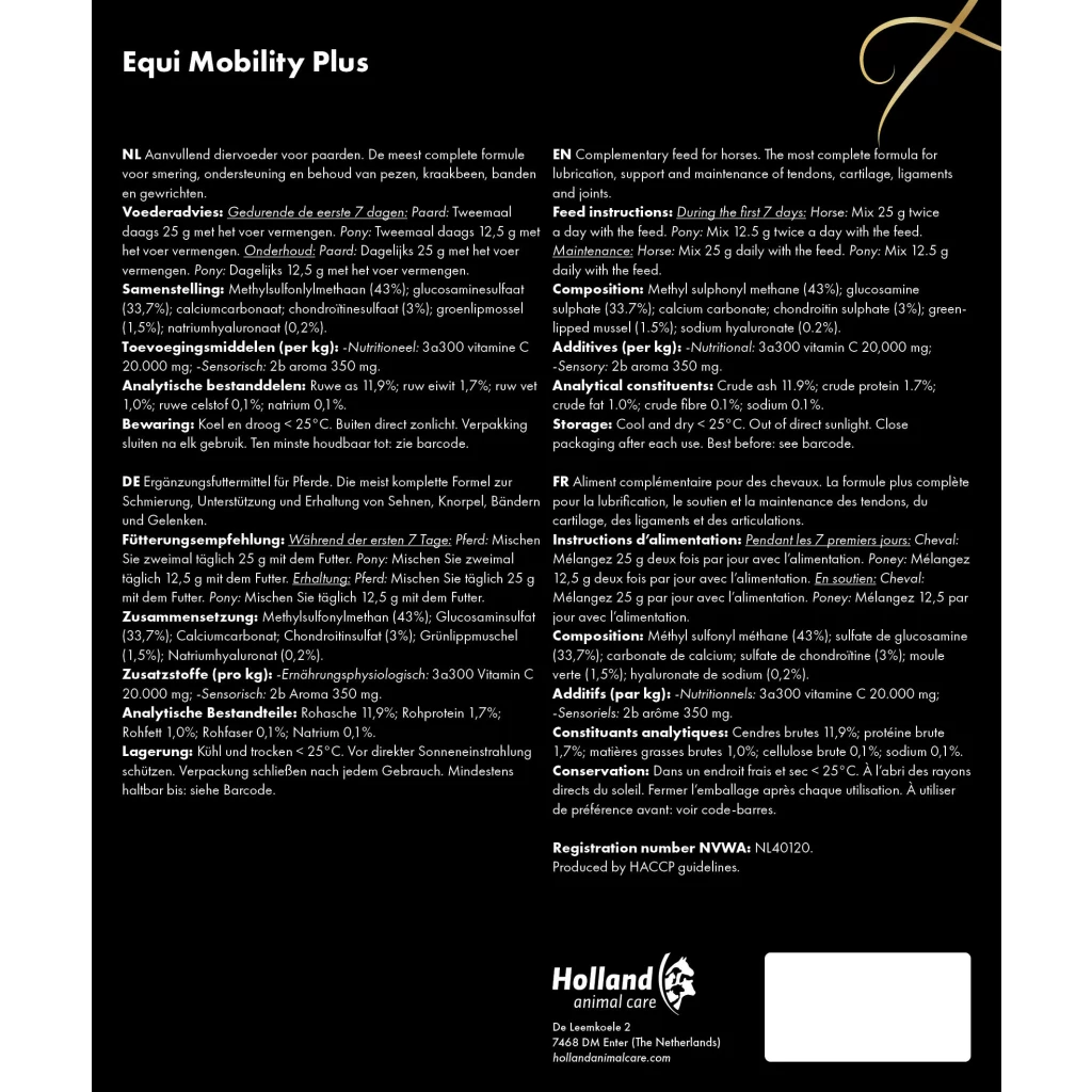 Equi Mobility Plus supports lubrication of the joints and contributes to the maintenance of the cartilage.