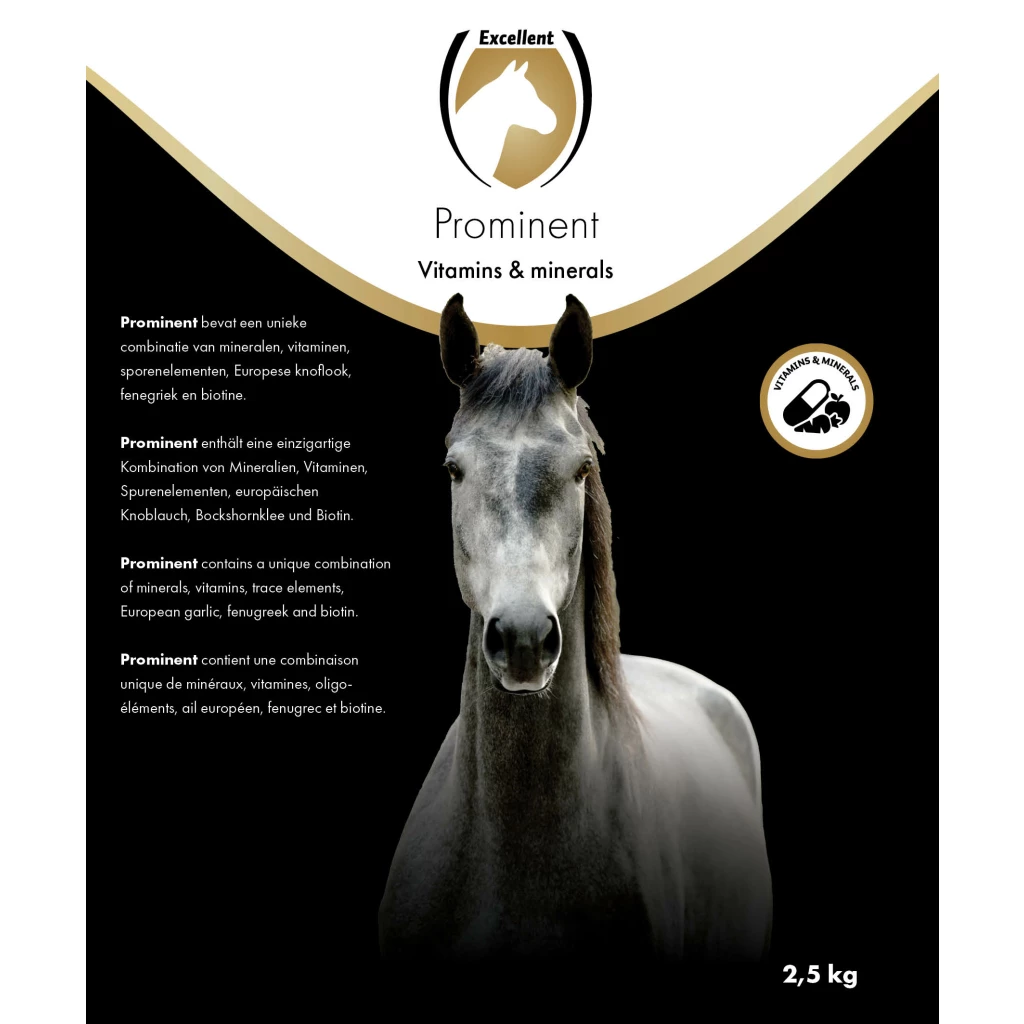 It also improves hoof condition and provides a healthy shiny coat. Prominent contains a well-balanced blend of minerals and vitamins, with special addition of garlic, fenugreek and biotin. By giving your horse Prominent for 7 consecutive days every month, the horse’s immune system will improve immensely.