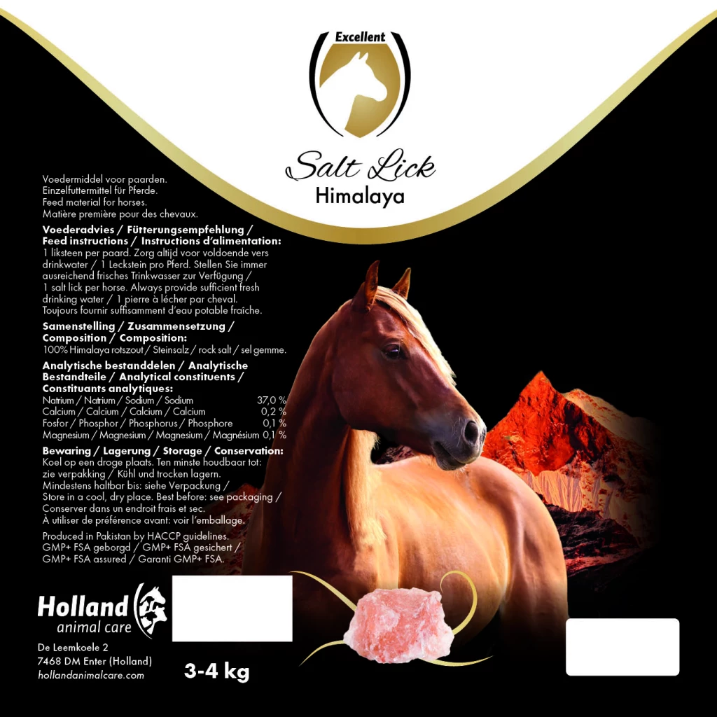Salt Lick Himalaya is ideal for preventing boredom in horses while meeting their salt needs. It is a premium quality salt, free of gunpowder, washed under high pressure and GMP+ FSA assured. This product is made from Himalayan salt that is extracted, processed and packaged at the source to preserve its natural freshness, aroma, and taste. This offers a product that is fresh from the mine to the stable.