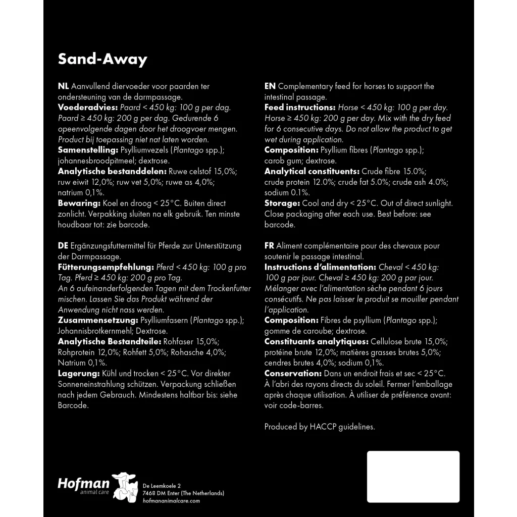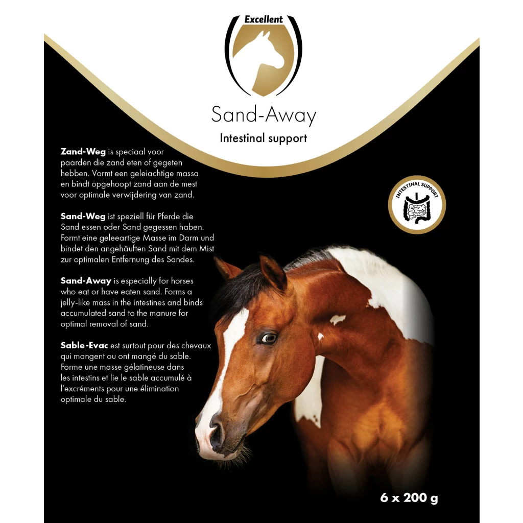 Sand-Exit forms a jelly-like mass in the intestines and binds heaped sand on the manure to subsequently leave the horse’s body.