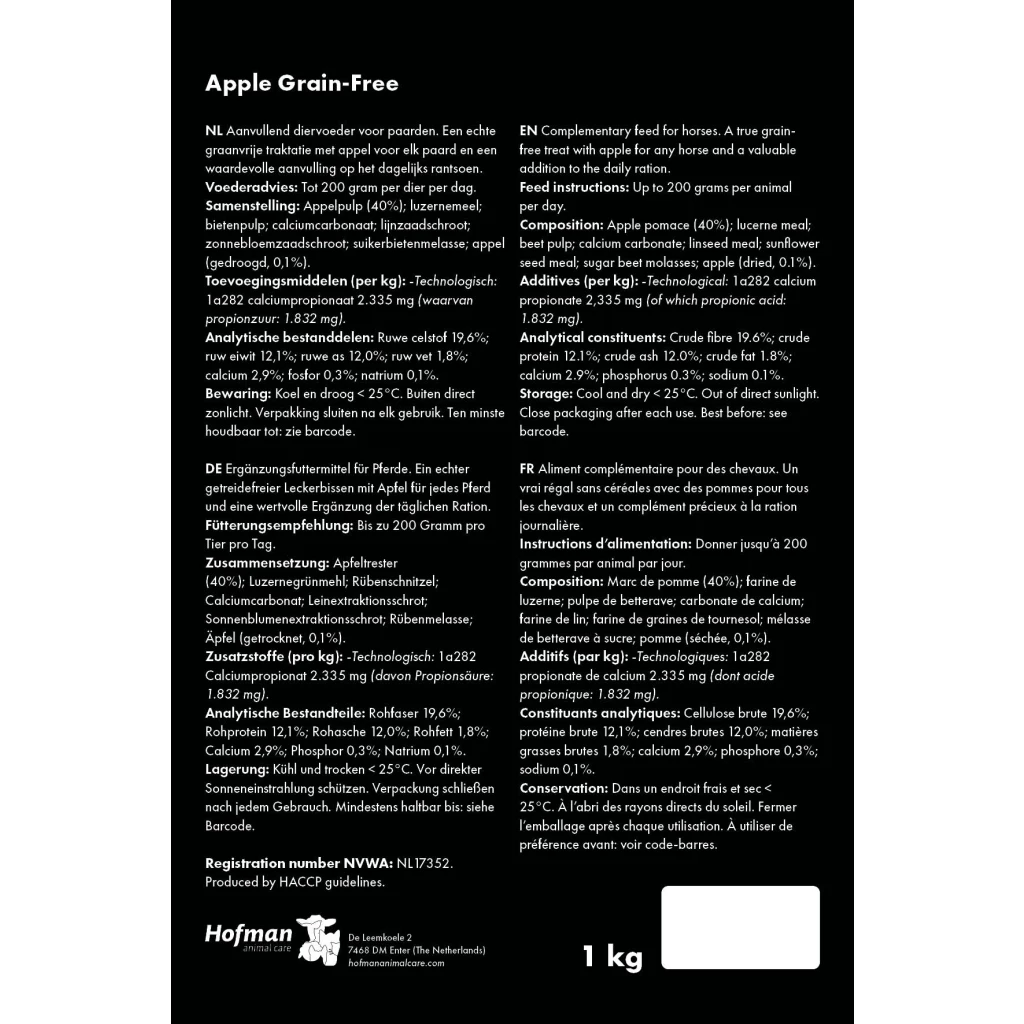 Grain Free Apple on maitsev ja tervislik preemiana antav täiendsööt hobustele, mis ei sisalda teravilja. See on ideaalne preemia – maitsev, kuid kerge maius, mis ei lisa liigseid kaloreid, ning samal ajal väärtuslik täiendus hobuse igapäevasele ratsioonile. Tänu kindlalt kokkupressitud graanulitele need ei kleepu ega pudene ning neid on mugav taskus või kotis kaasas kanda.