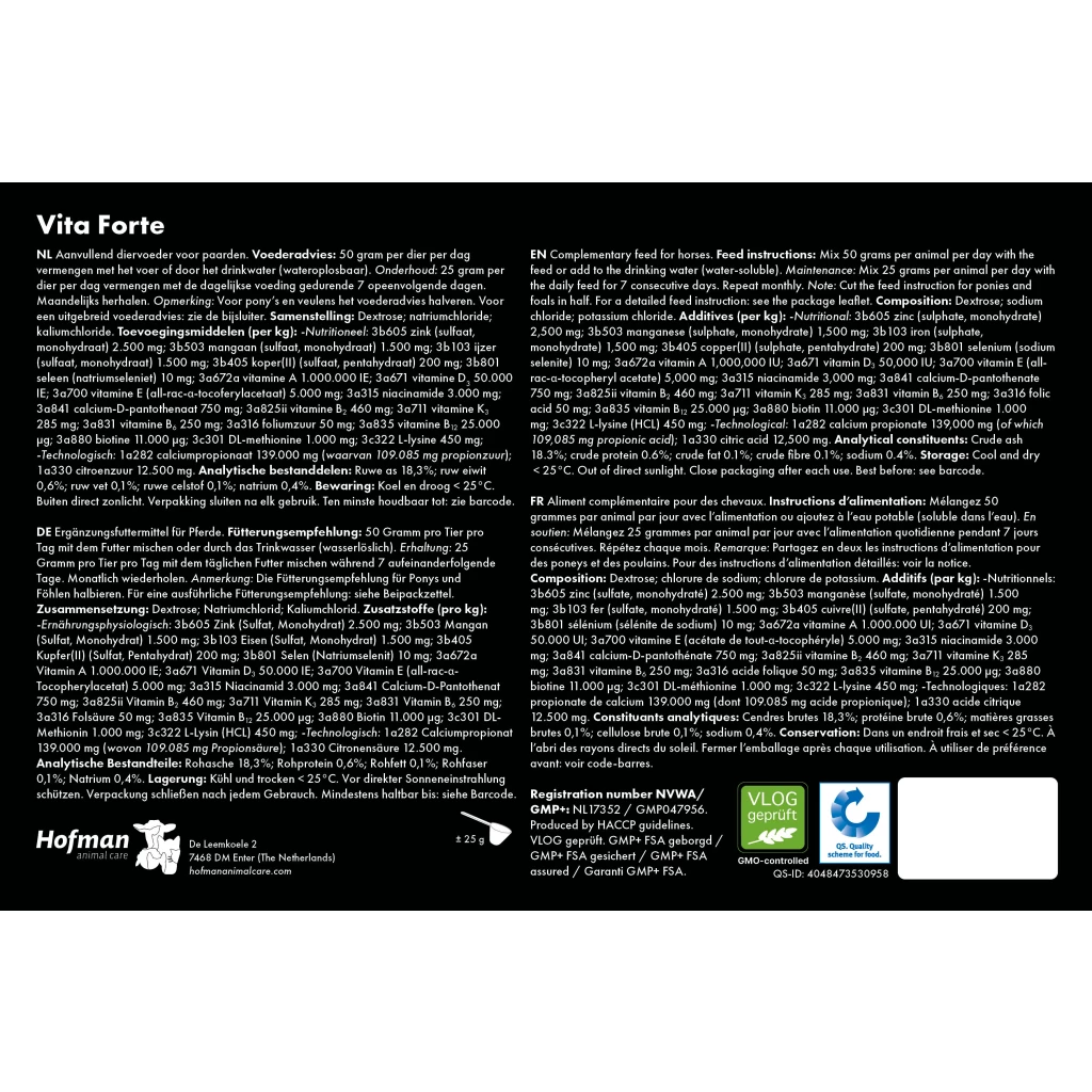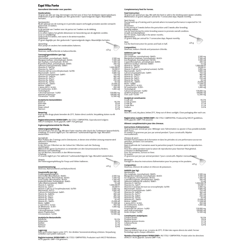 Equi Vita Forte consists of a balanced blend of essential vitamins, trace elements and amino acids to support overall condition.