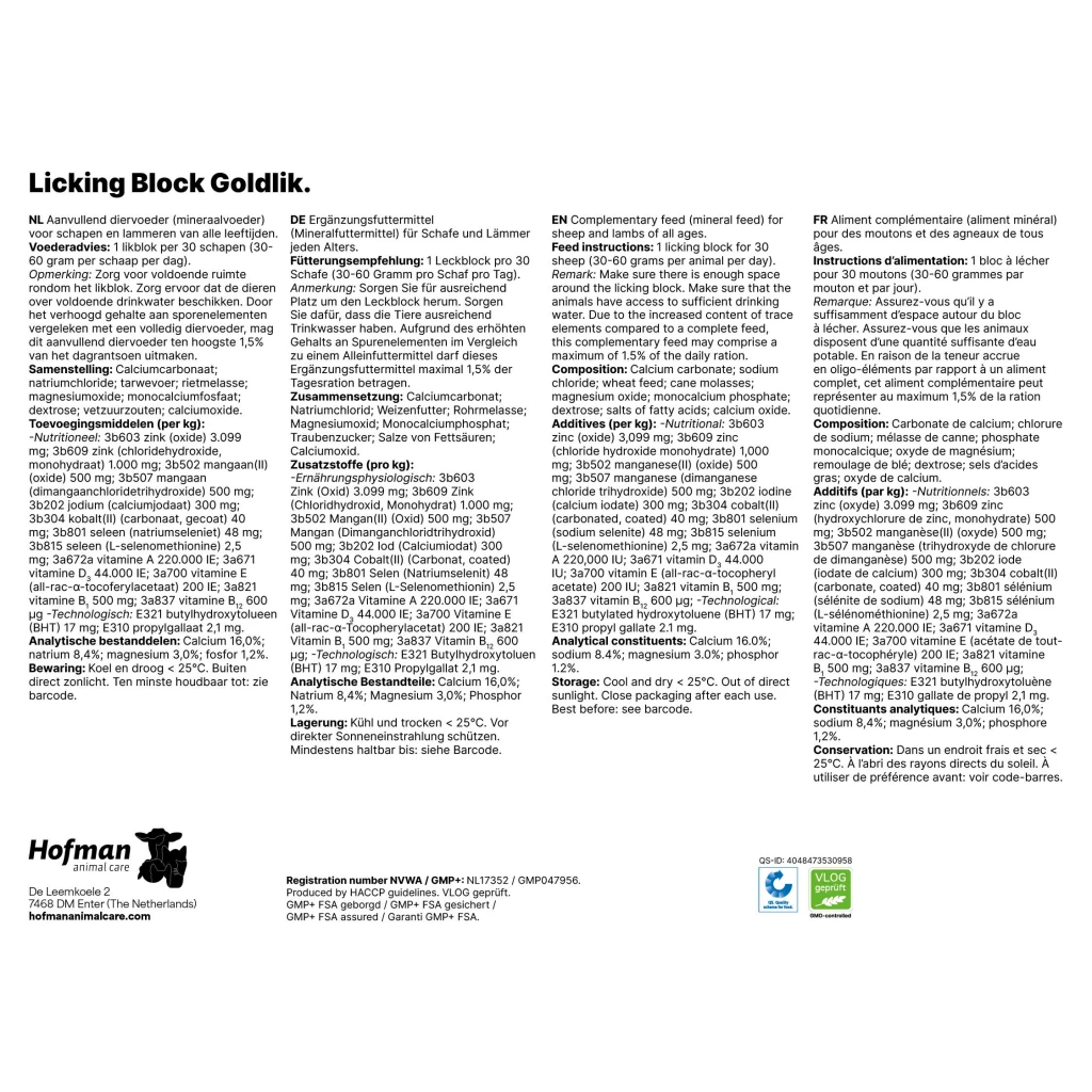 A mixture of minerals in the form of a lick block enriched with molasses to supplement minerals and trace elements for sheep and lambs of all ages.