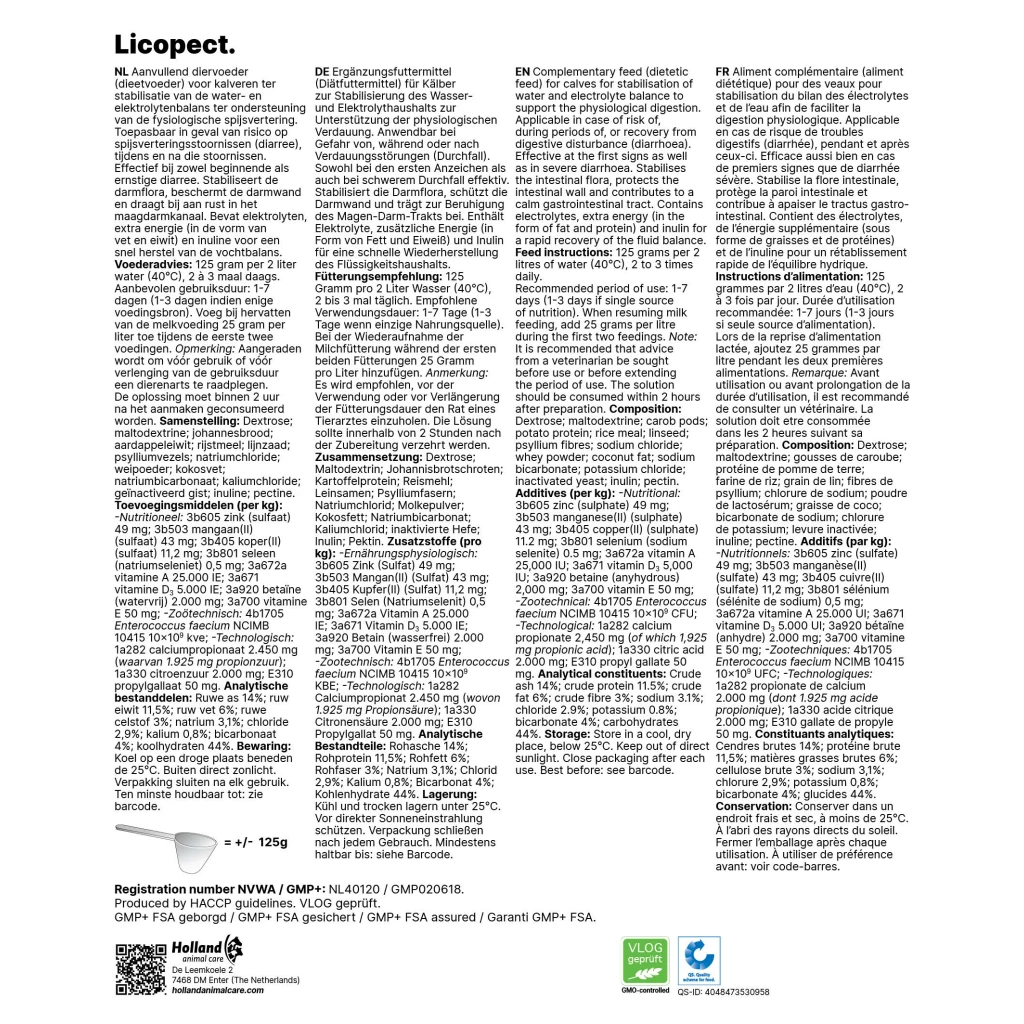 For calves in case of risk of digestive disorders (diarrhoea). Quickly resolves digestive disorders and prevents backlash in growth.