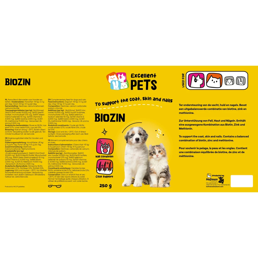 Excellent Pets Biozin is a complementary feed for dogs and cats in powder form. It supports the coat, skin and nails.