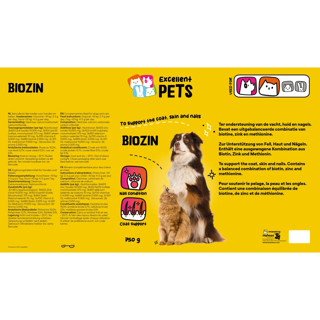 Excellent Pets Biozin is a complementary feed for dogs and cats in powder form. It supports the coat, skin and nails.