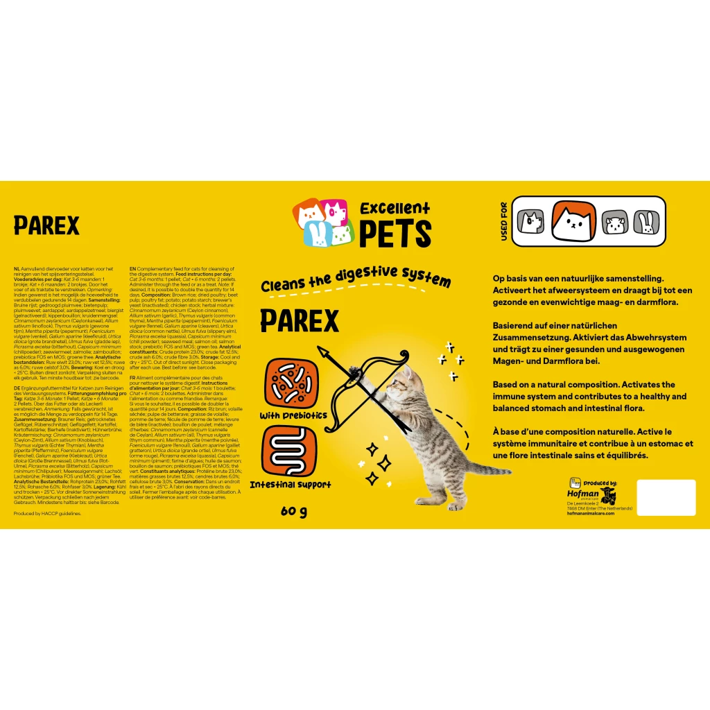 Excellent Pets Cat Parex is a complementary feed for cats in kibble form. It activates the immune system and contributes to a healthy and balanced gastrointestinal flora.