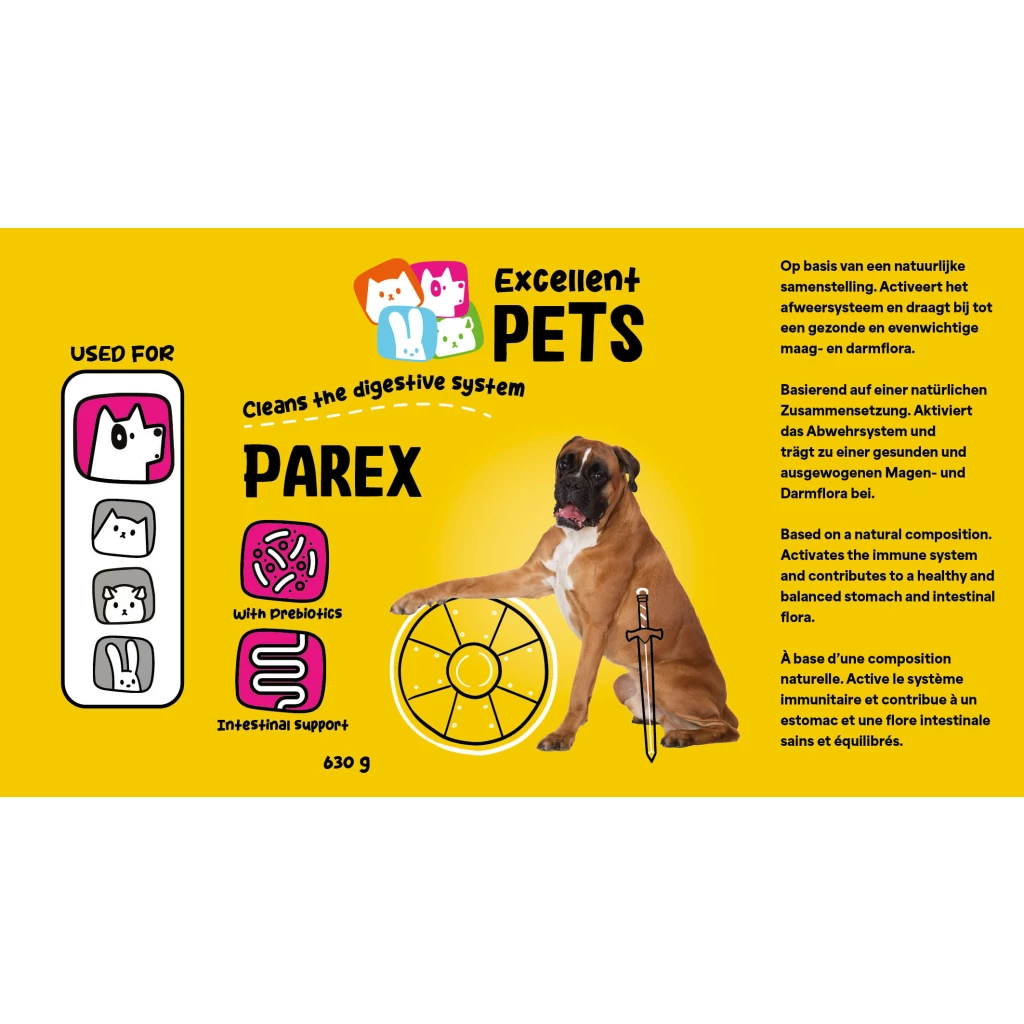 Excellent Pets Dog Parex is a complementary feed for dogs in kibble form. It activates the immune system and contributes to a healthy and balanced gastrointestinal flora.