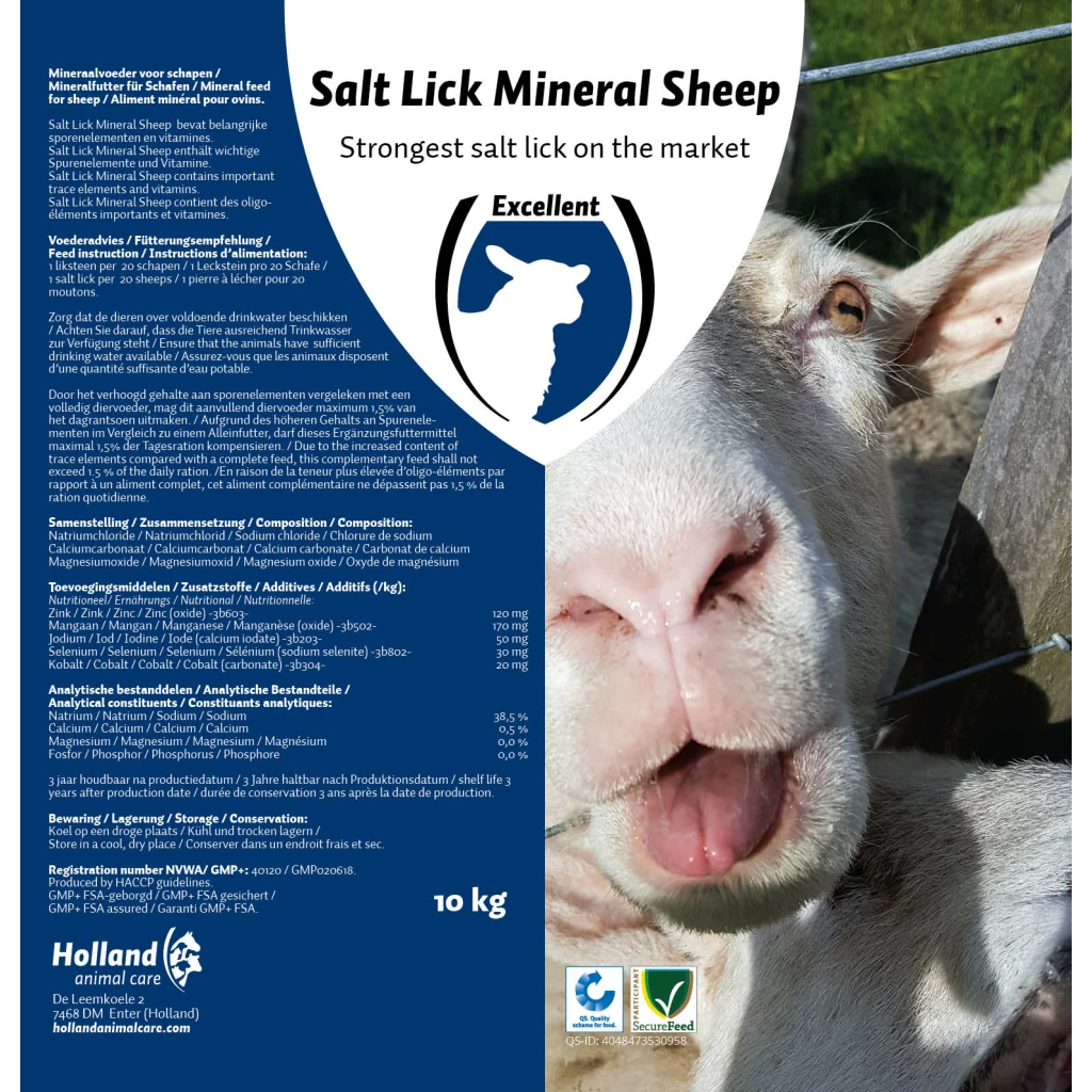 Salt lick made from rock salt. Rock salt contains natural minerals. Minerals and salt are indispensable for every sheep. Sheep absorb minerals and salt according to their needs. In addition to salt, the salt lick also contains trace elements: