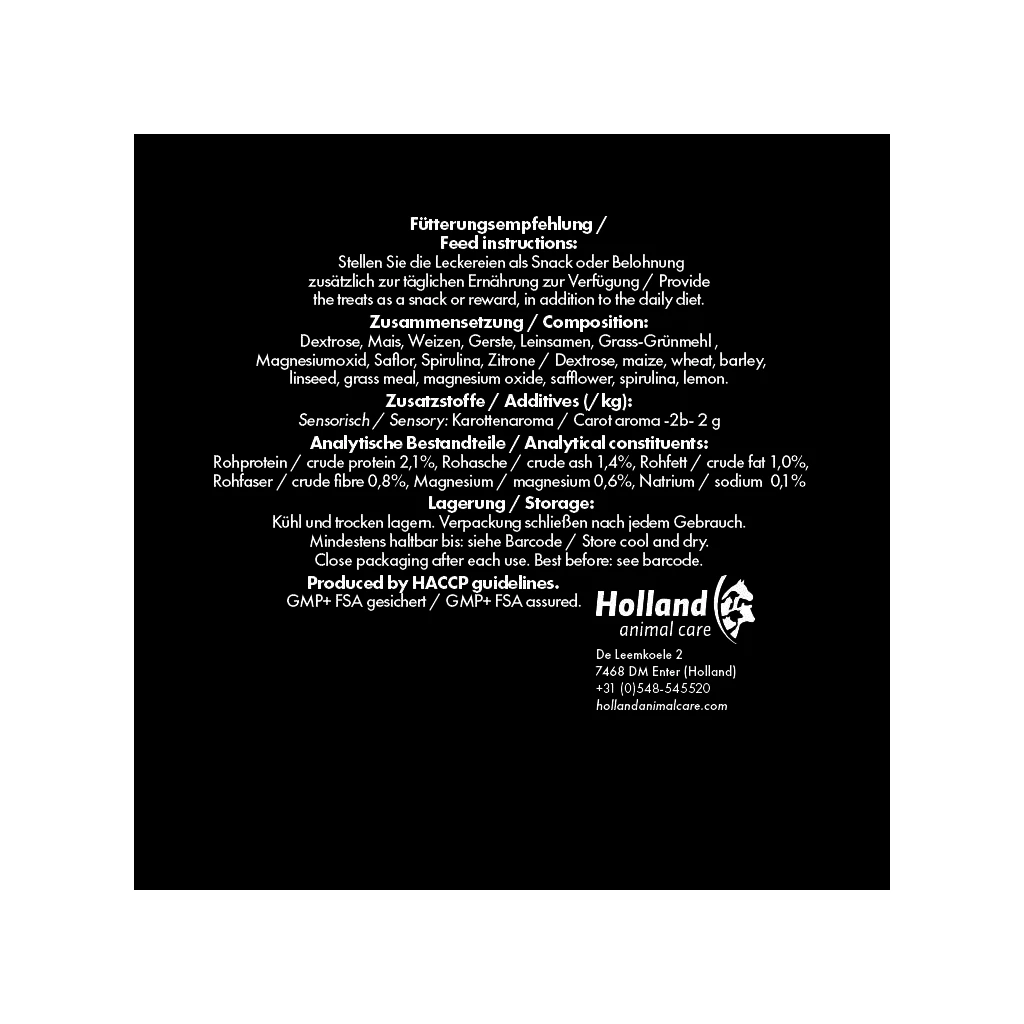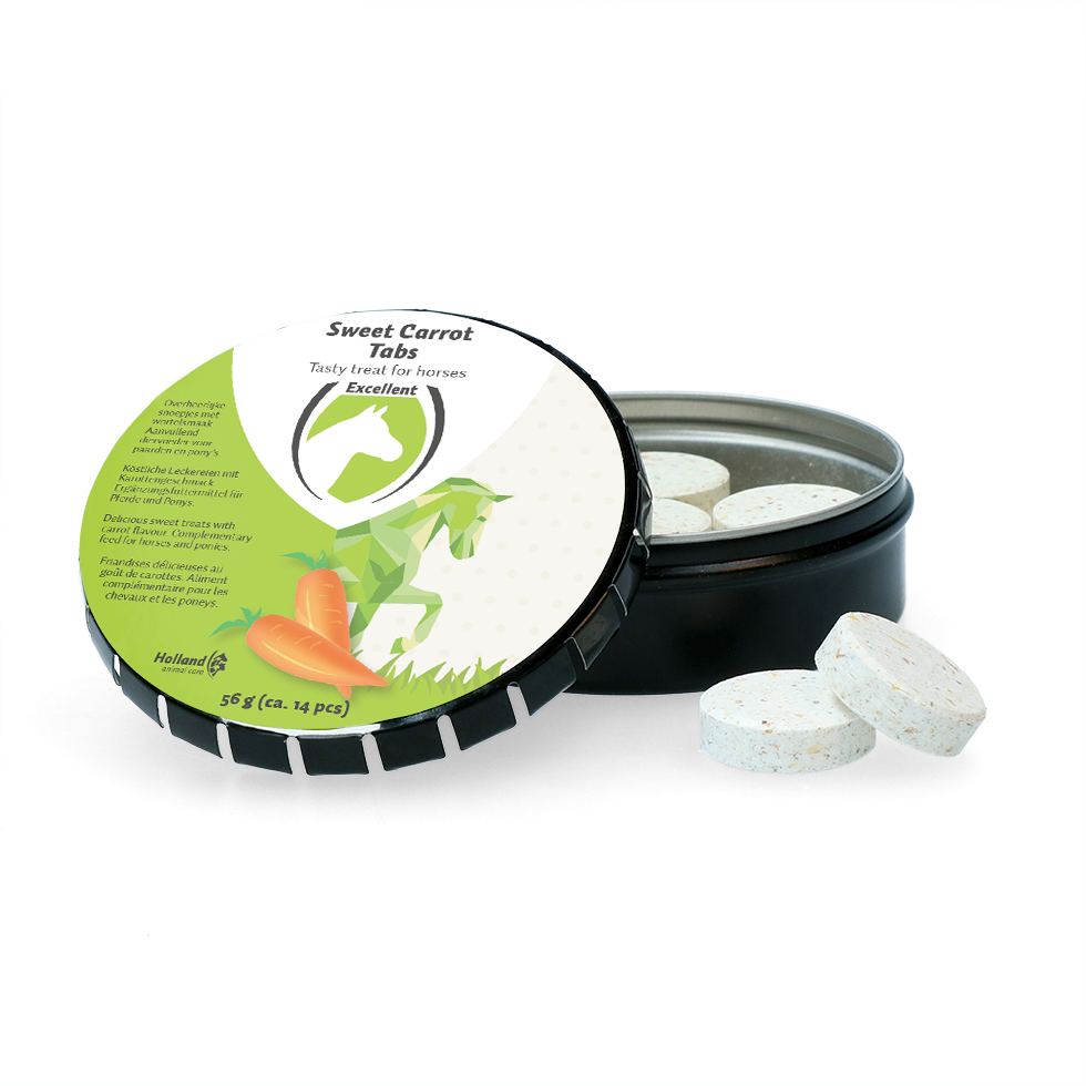 The tabs contain a.o. dextrose, corn and wheat. Horses just love them!