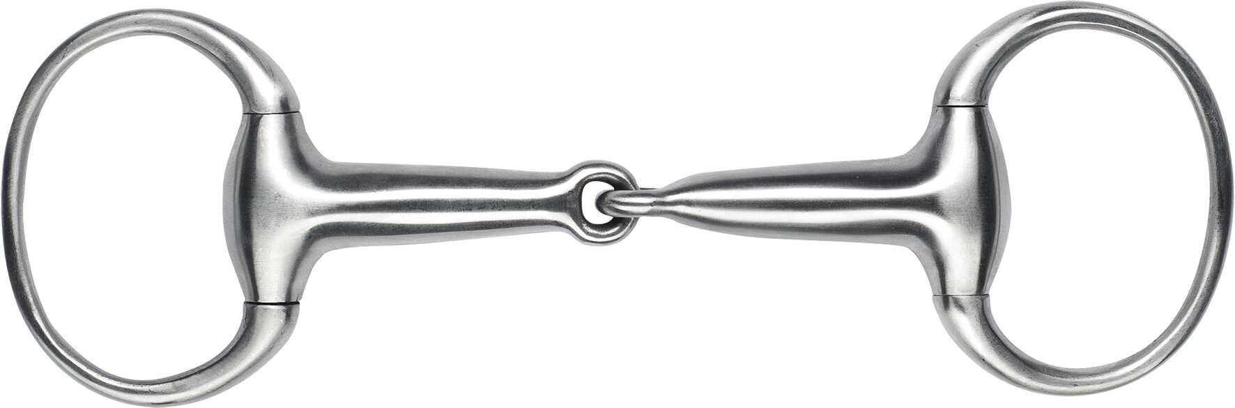 A simple mouthpiece, rather gentle, with no risk of pinching the lips. More direct rein control than a regular bit. Made of satin-finished stainless steel.
