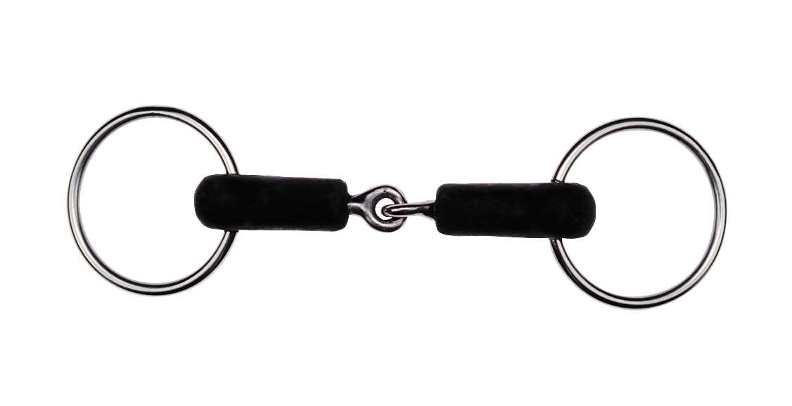 Jointed from stainless steel with rubber-coated shanks. Very comfortable for young horses.